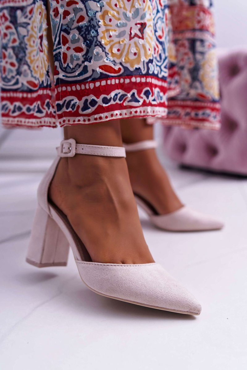 Czółenka Zamszowe Obcas Słupek Beżowe Harye
