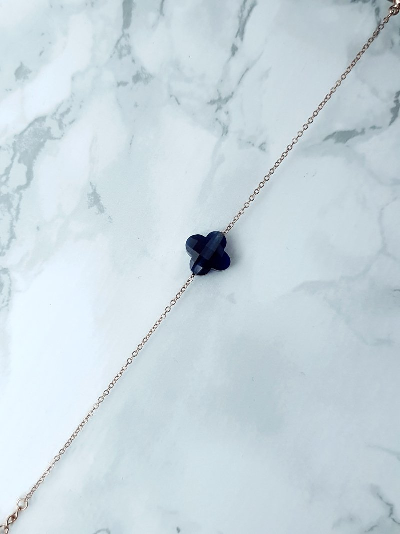 Damska Bransoleta Na Łańcuszku Granatowa Koniczynka Złota Memphis