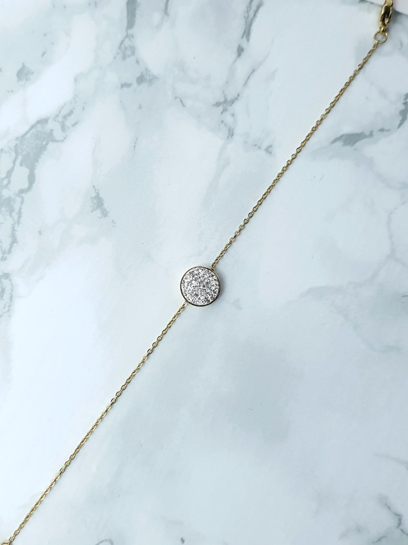 My kobiety kochamy błyskotki. Każda stylizacja potrzebuje dodatków, a nawet te najmniejsze są bardzo ważne. Mowa tu o pięknej biżuterii, która podkreśli to co najlepsze. Wspaniała bransoletka na łańcuszku z małym kółeczkiem wypełnionym cyrkoniami. Kółeczko zostało wykonane z wysokiej jakości tworzywa, natomiast łańcuszek to stal nierdzewna. Modny wzór na który każda z nas zwróci uwagę. Możliwość regulacji długości bransoletki. Sprawdź całą naszą kolekcję biżuterii i wybierz swój ulubiony dodatek.