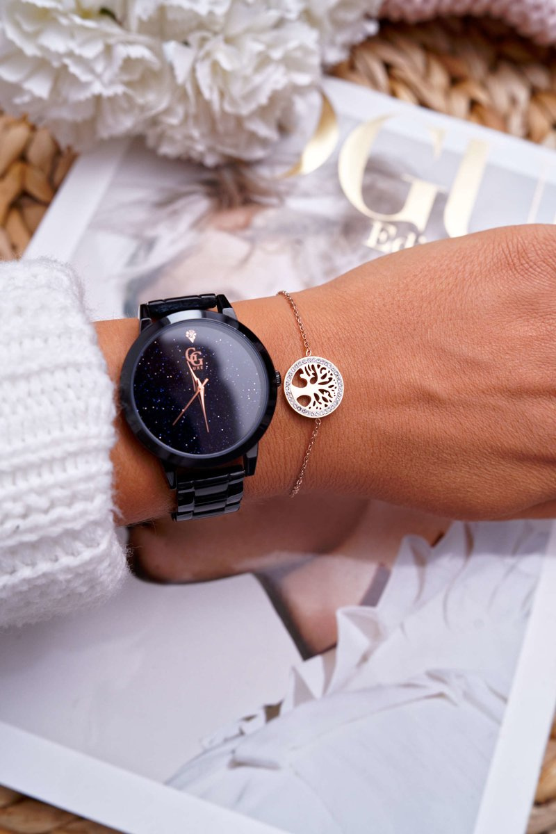 Damska Bransoleta Na Łańcuszku Różowe Złoto Drewo Życia Cring