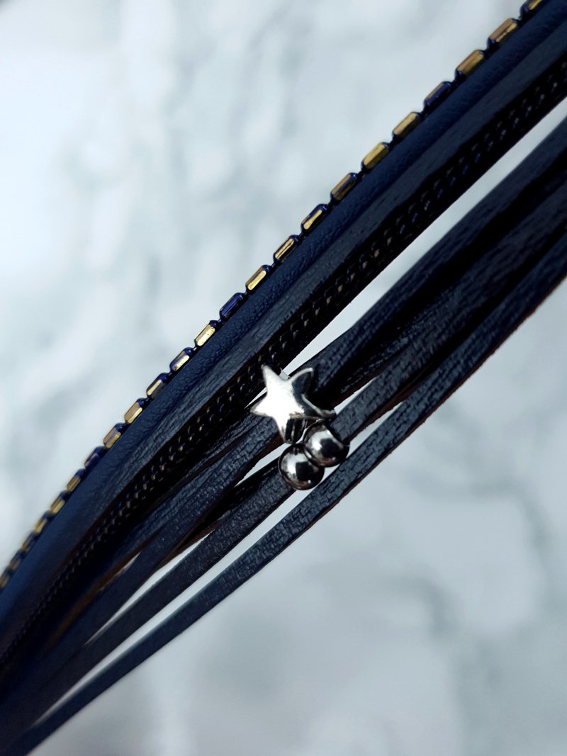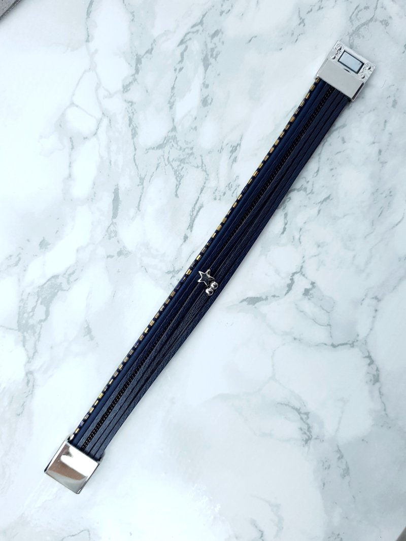 Damska Bransoleta Rzemień Granat Gwiazdka Michiko