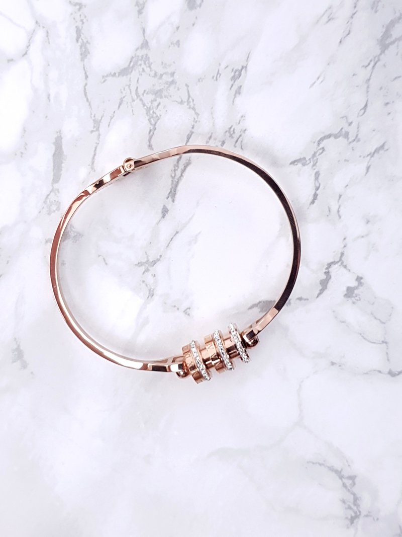 Damska Bransoleta Stalowa Z Cyrkoniami Różowe Złoto Bix