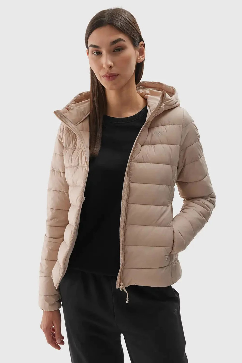 Damska Kurtka Puchowa Z Kapturem 4F 4FWAW24TDJAF468-83S Beżowa
