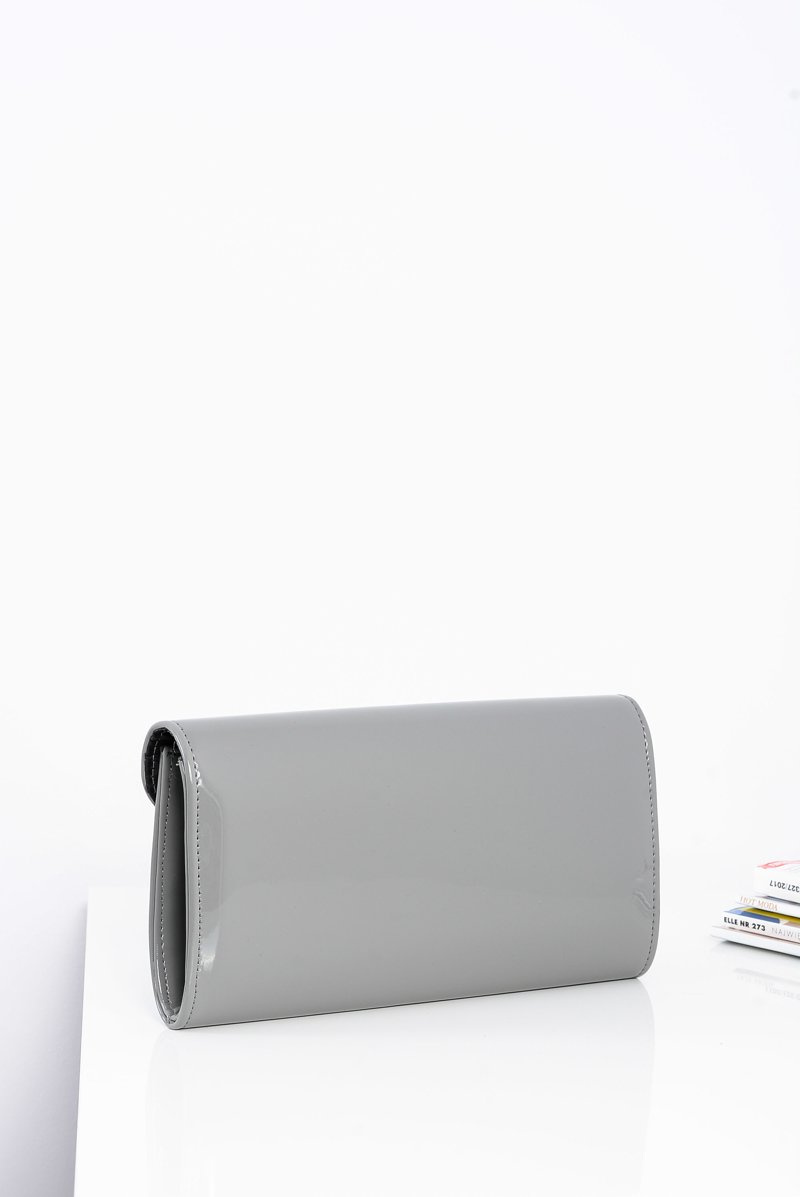 Damska Szara Lakierowana Torebka do Ręki Kopertówka
