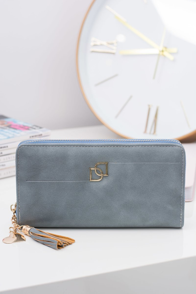 Damski Błękitny Duży Portfel z Frędzlem Brelok