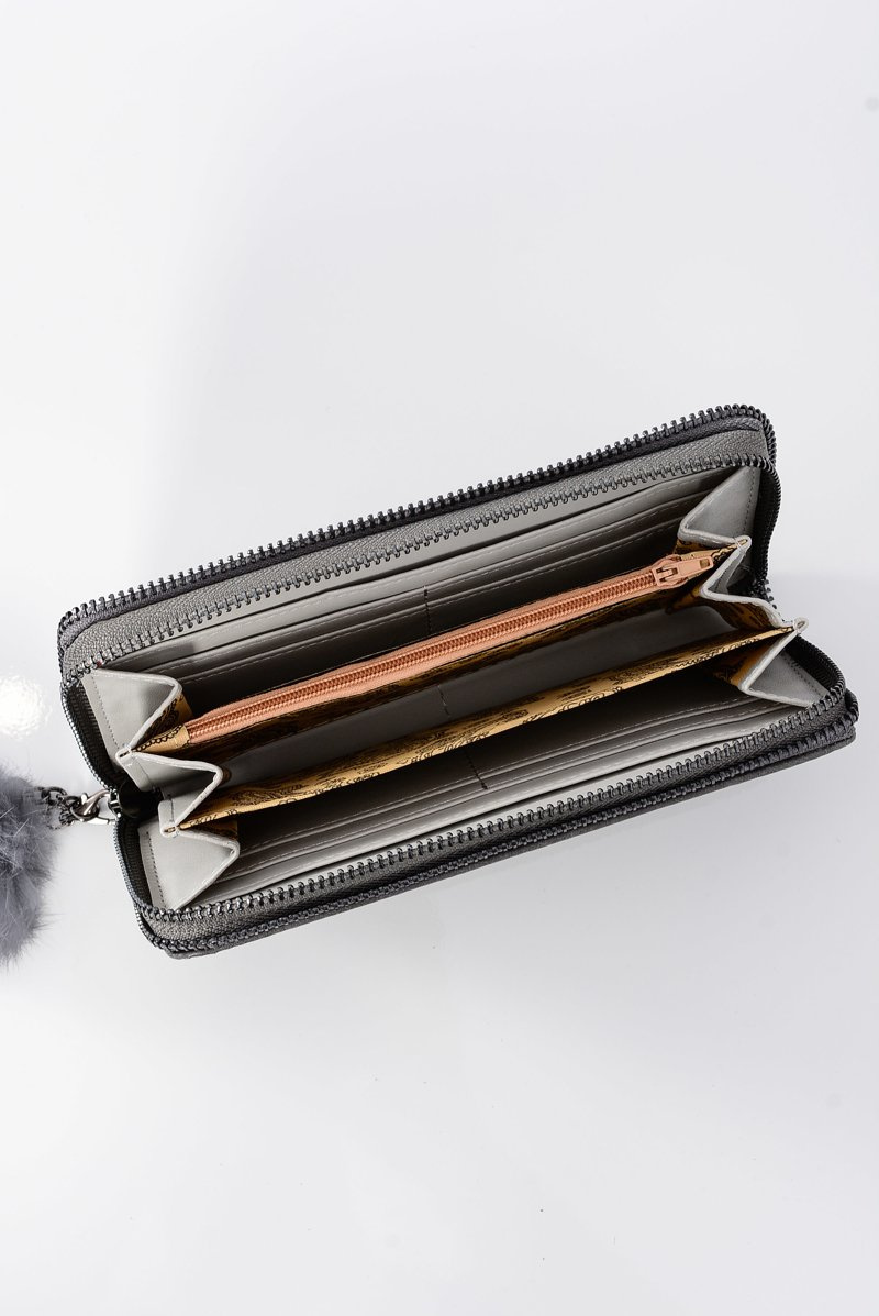 Przedstawiamy piękny portfel dla eleganckich Pań. Produkt ten charakteryzuje wyjątkowy szyk wzorowany na trendach mody. Portfele wykonane przy użyciu tylko najwyższej klasy materiałów. Staranne i piękne wykończenie portfela oddaje niesamowitą dbałość o detale oraz modowy gust. Wewnątrz znajdziemy 3 przegródki, które zapinane są na zamek przyozdobiony brelokiem z pomponem. Jedna z kiszonek zapinana jest na zameczek, która świetni sprawdzi się do przechowywania bilonu, dodatkowo po bokach znajduje się 8 przegródek na karty i dwie na większe dokumenty. Dostępne w kilku kolorach. Nie czekaj i spraw sobie ten wspaniały portfel ozdobiony pomponem oraz imitacją zamka na brzegach.