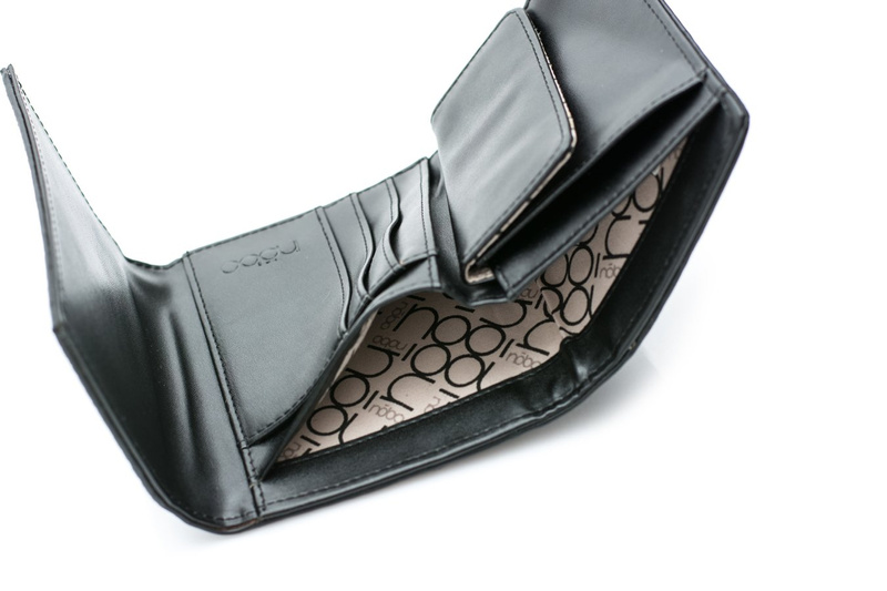 Dopełnieniem każdej kobiecej stylizacji jest nie tylko torebka i buty ale również dobrze dobrany portfel. Portfele renomowanej firmy NOBO są cenione przez wszystkie kobiety. Prezentowany model wykończony jest wysokiej jakości skórą ekologiczną o delikatnie chropowatej fakturze. Portfel zapinany jest na solidny nap. Wewnątrz znajduje się 5 kieszonek na karty, 1 duża komora na banknoty oraz 1 przegródka na bilon, która również zapinana jest na nap.