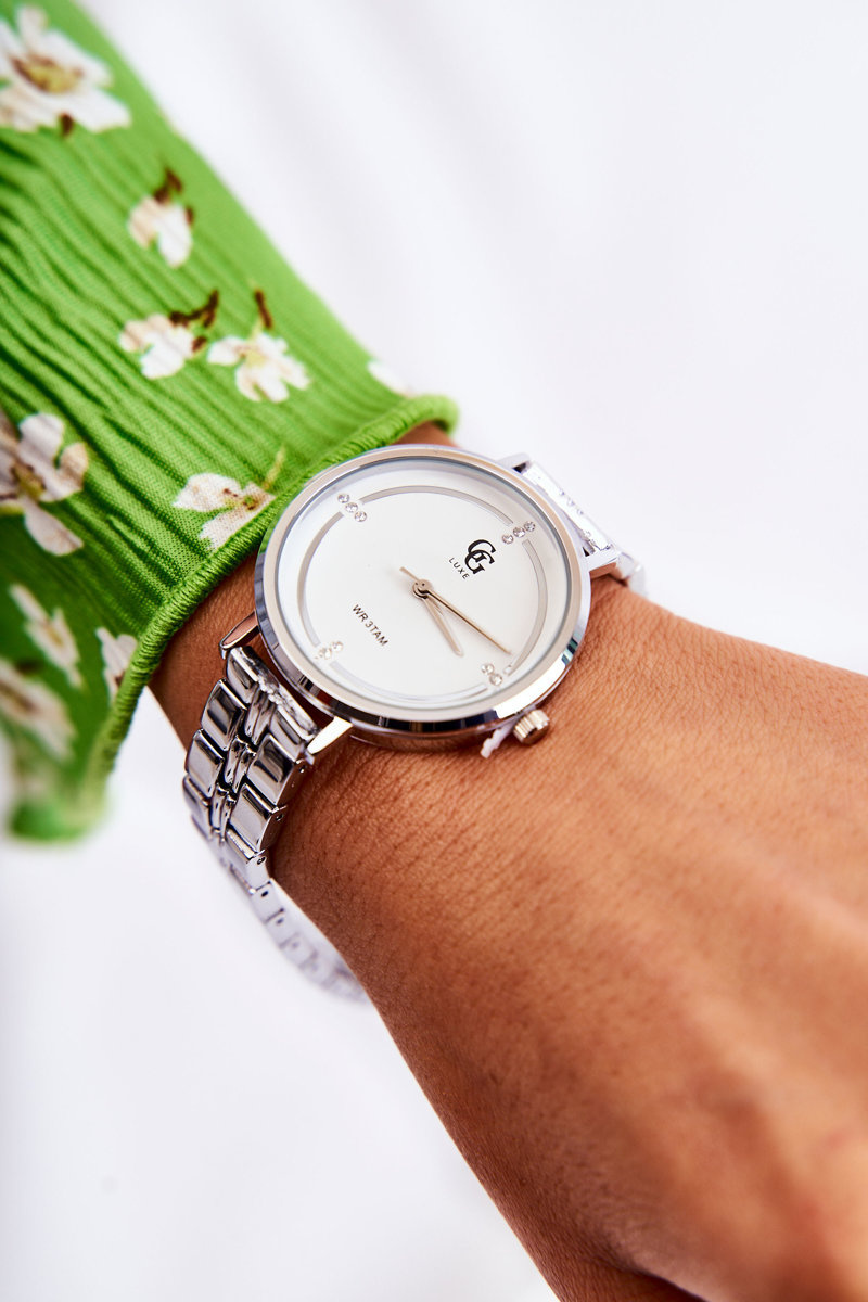 Ten model zegarka GG Luxe posiada oryginalną bransoletkę ze stali nierdzewnej. Okrągła i czytelna tarcza. Ten zegarek będzie pasować również na drobne nadgarstki. Wodoszczelność WR30M zapewnia bezpieczeństwo podczas przypadkowego zachlapania zegarka, np. mycia rąk. Do zegarka dołączone jest ozdobne pudełko.