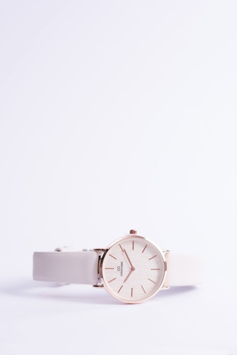 Jules to klasyczna i elegancka linia damskich zegarków Giorgio & Dario. Dostępne w dwóch rozmiarach - z małą 33mm tarczą oraz dużą 38mm. Zegarek posiada delikatnie płaskie szkiełko, dzięki temu jeszcze lepiej prezentuje się na ręce a jednocześnie jest bardziej czytelny. Pasek wykonany z delikatnej w dotyku skóry ekologicznej z możliwością łatwiej regulacji, koperta w złotym kolorze ze stali chirurgicznej, pasuje zarówno do eleganckich jak i codziennych stylizacji. Wysoka jakość wykonania mechanizmu i koperty.