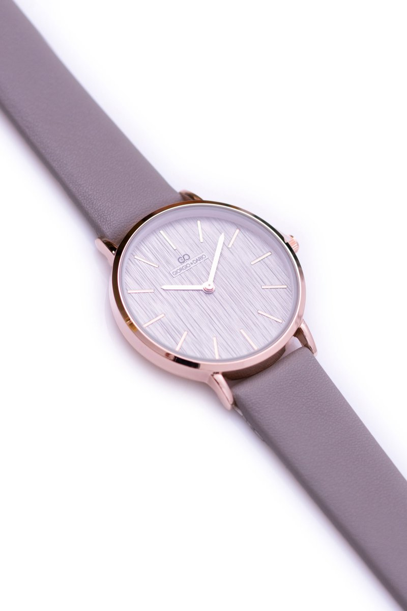 Jules to klasyczna i elegancka linia damskich zegarków Giorgio & Dario. Zegarek posiada delikatnie płaskie szkiełko, dzięki temu jeszcze lepiej prezentuje się na ręce a jednocześnie jest bardziej czytelny. Pasek wykonany z delikatnej w dotyku skóry ekologicznej z możliwością łatwiej regulacji, koperta w złotym kolorze ze stali chirurgicznej, pasuje zarówno do eleganckich jak i codziennych stylizacji. Wysoka jakość wykonania mechanizmu i koperty.