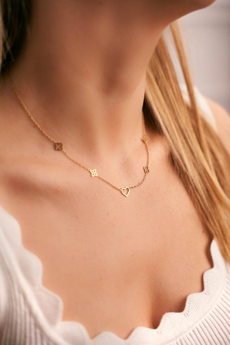 Damski Złoty Naszyjnik Łańcuszek Koniczynka Serce Sweetie