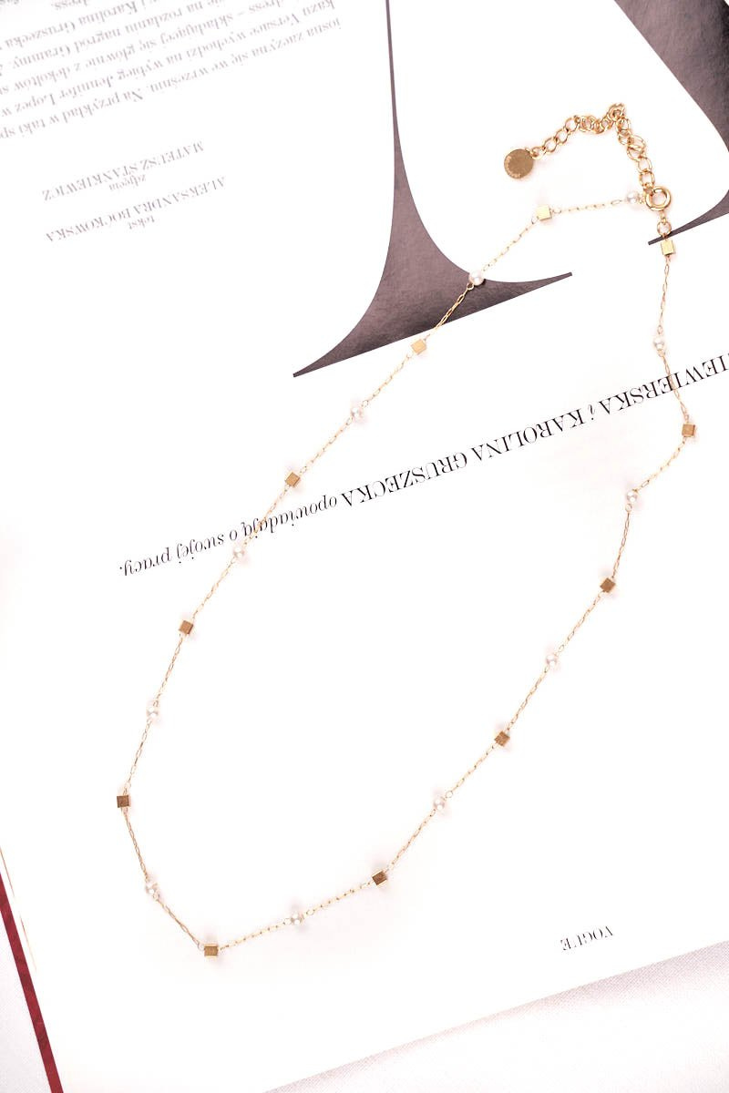 Damski Złoty Naszyjnik Łańcuszek Perełki Christine