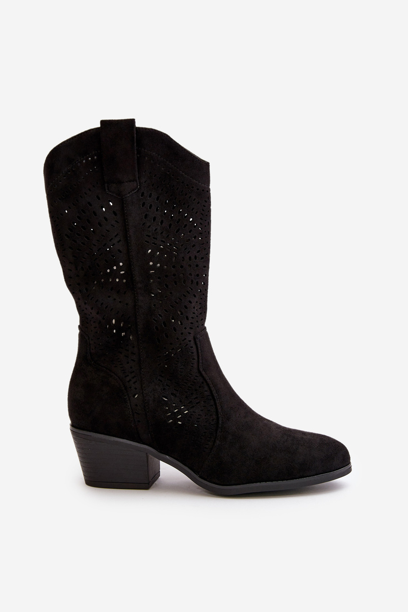 Damskie Ażurowe Botki Kowbojki Na Obcasie Czarne Iceda