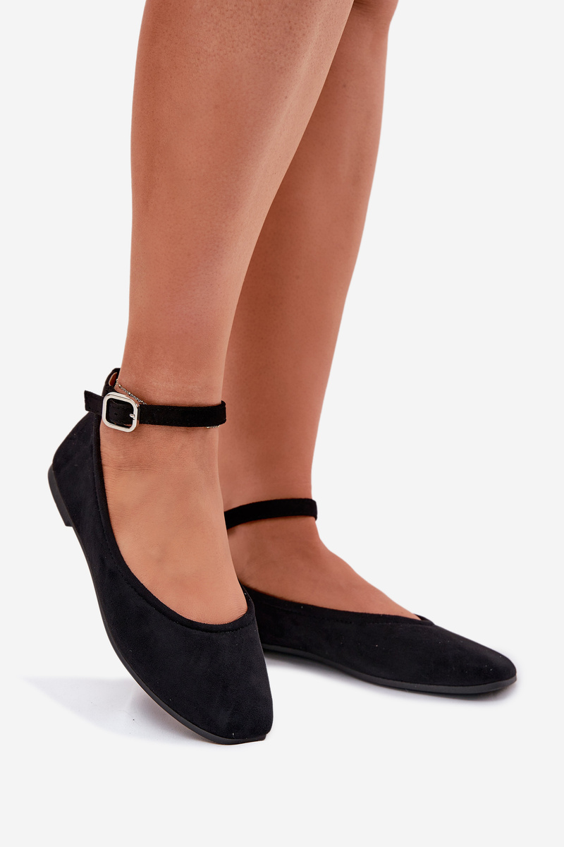 Damskie Baleriny Z Eko Zamszu Czarne Deomira
