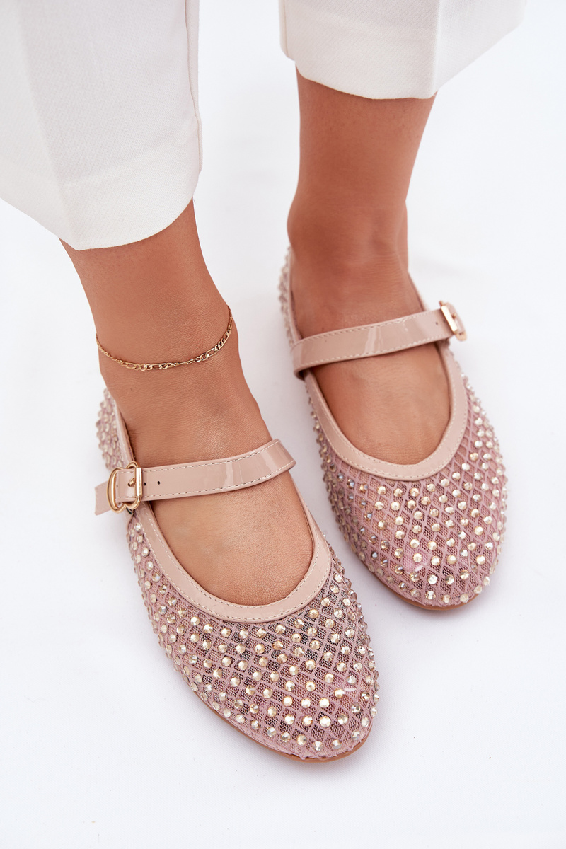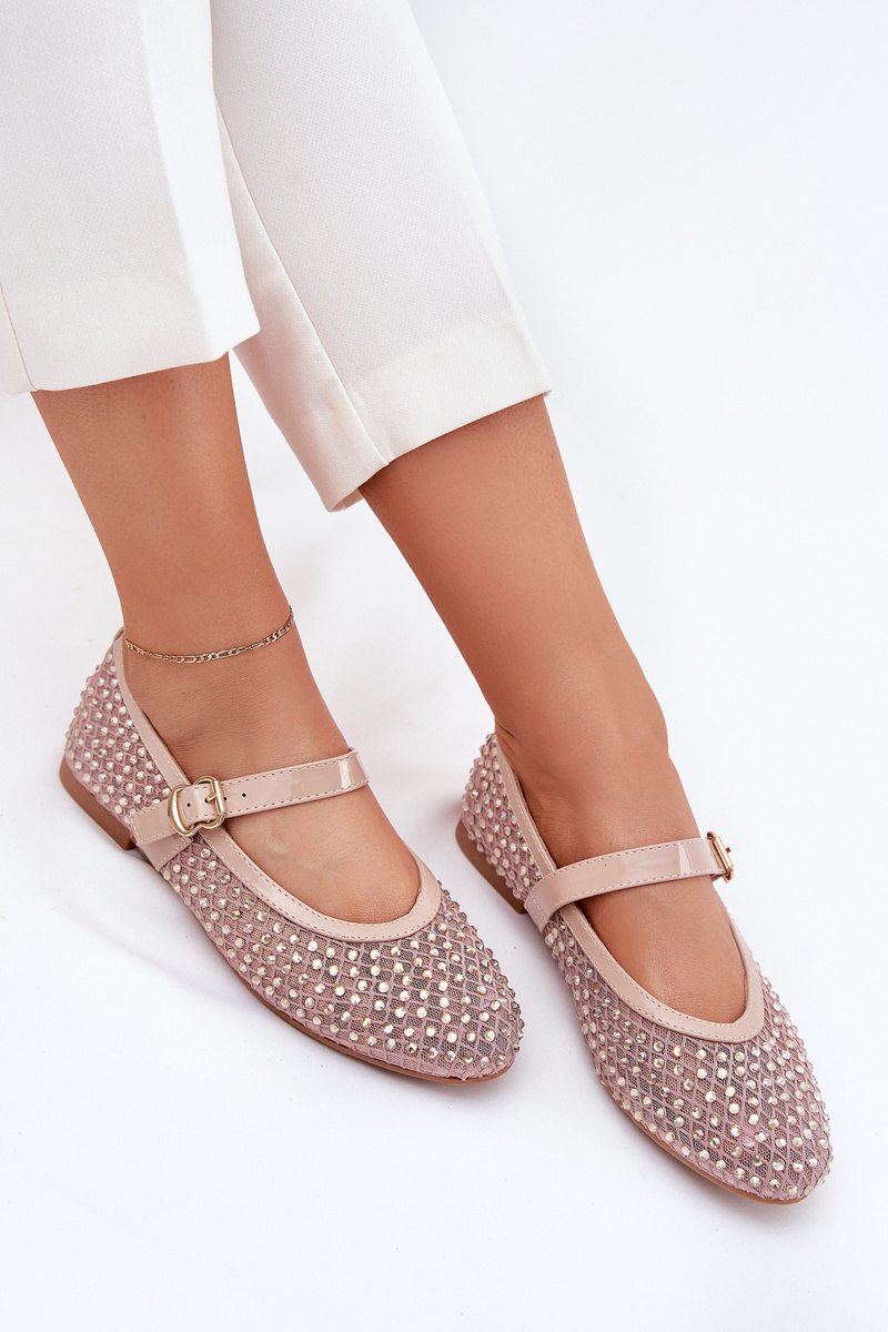 Damskie Baleriny Ze Zdobieniem Pasek I Klamra Beżowe Avirae