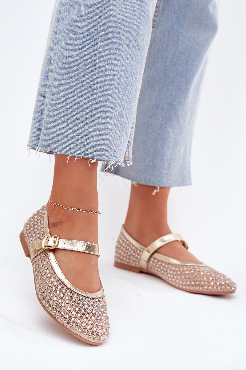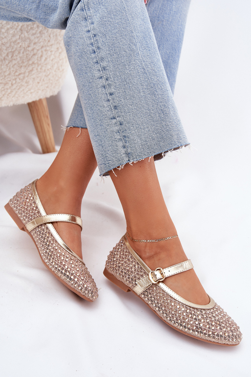 Damskie Baleriny Ze Zdobieniem Pasek I Klamra Złote Avirae