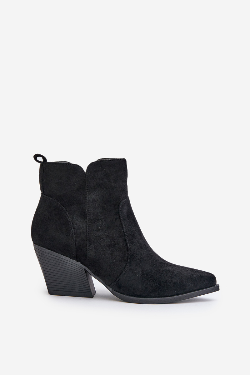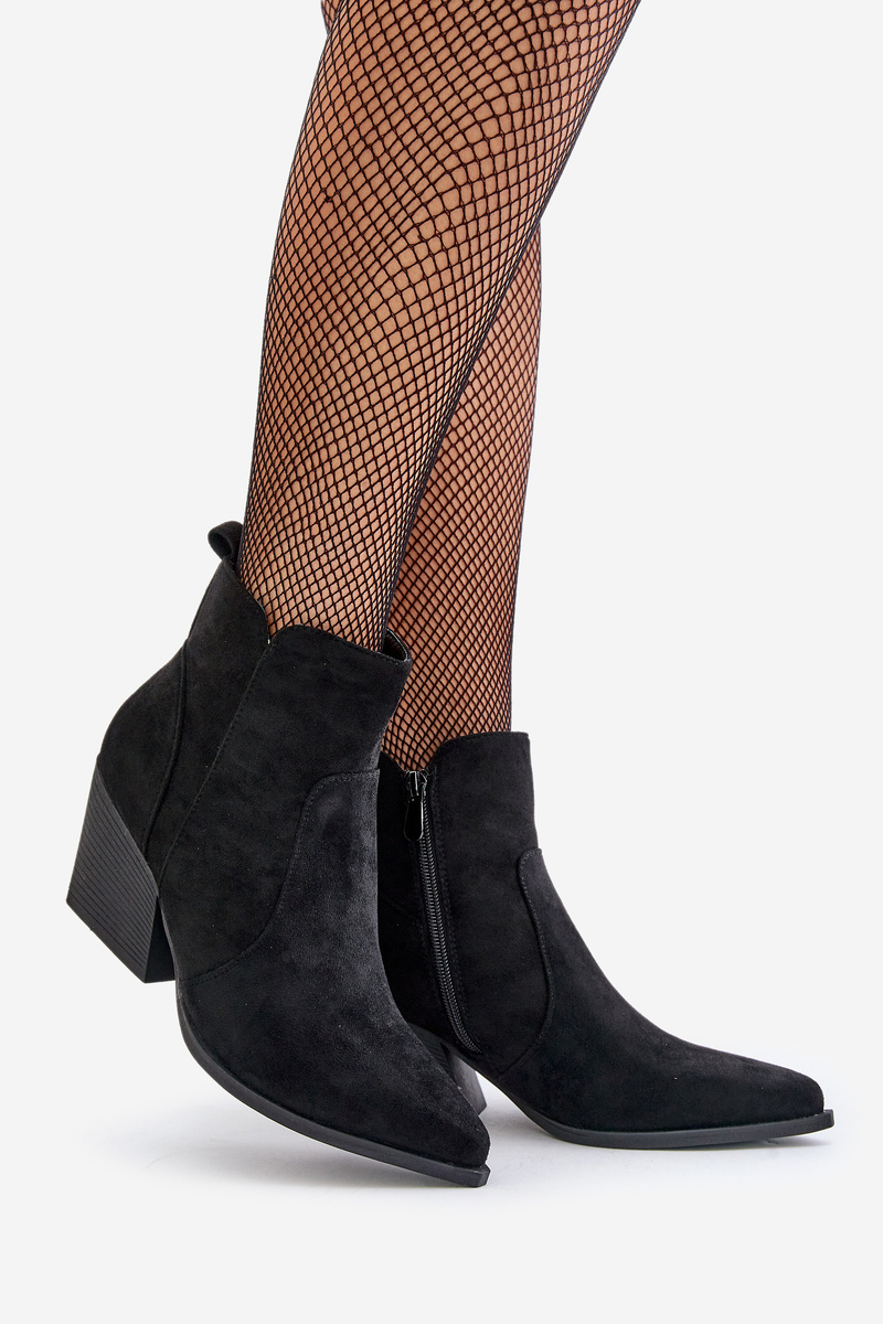 Damskie Botki Kowbojki Zamek Eko Zamsz Ocieplane Czarne Virtris