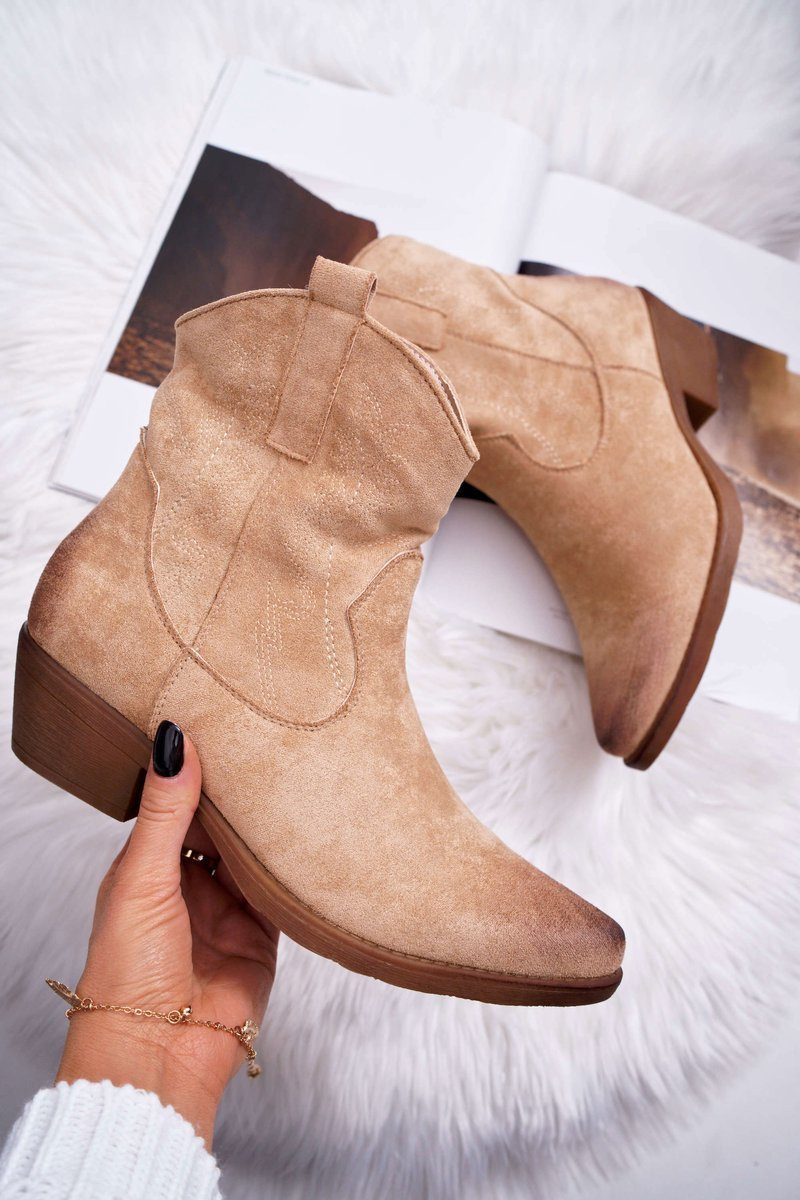 Opinie o Damskie Botki Kowbojki Zamszowe Beżowe Ferders