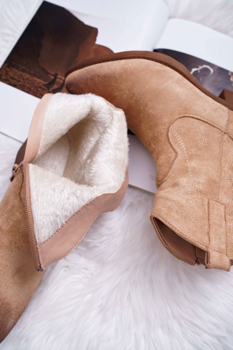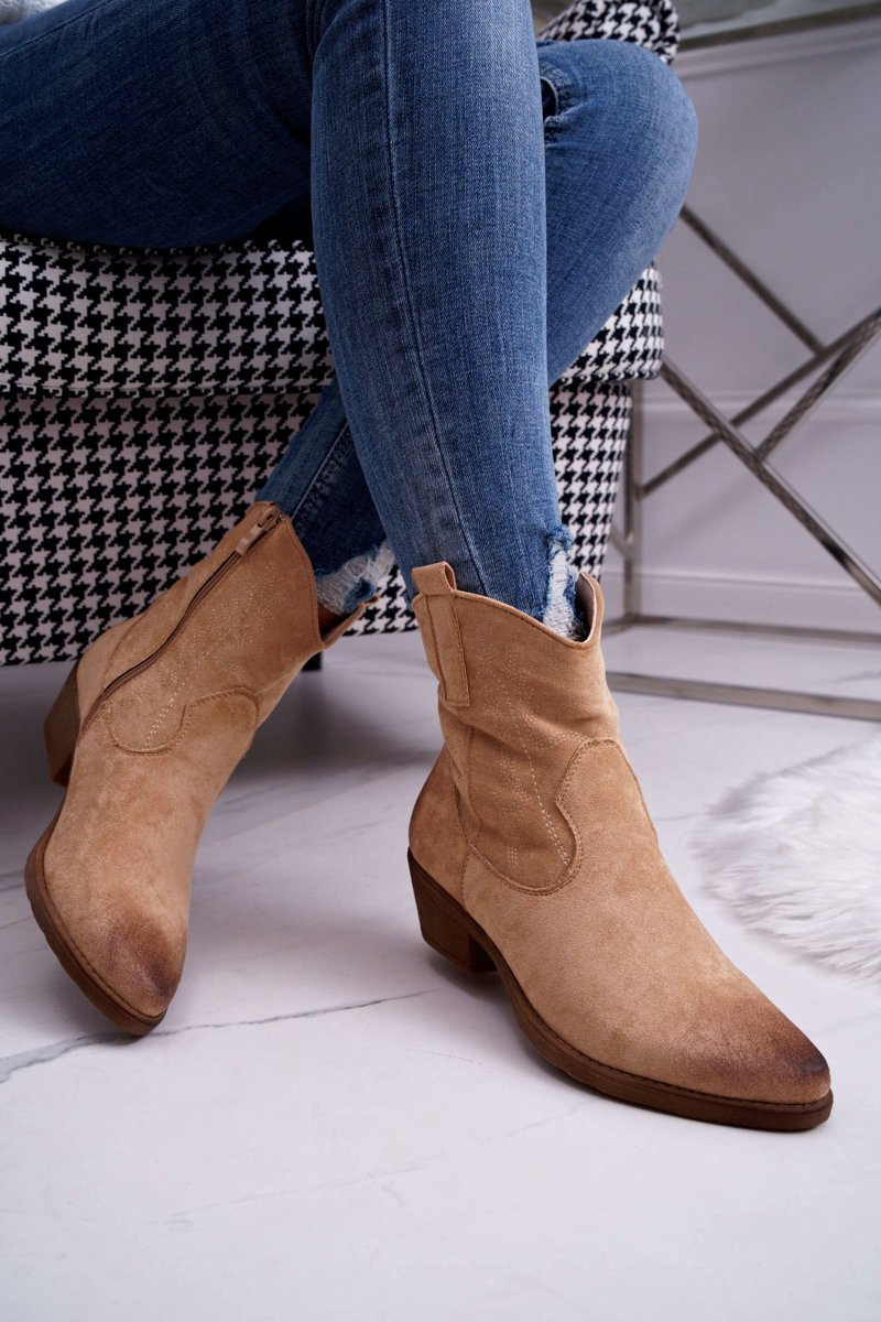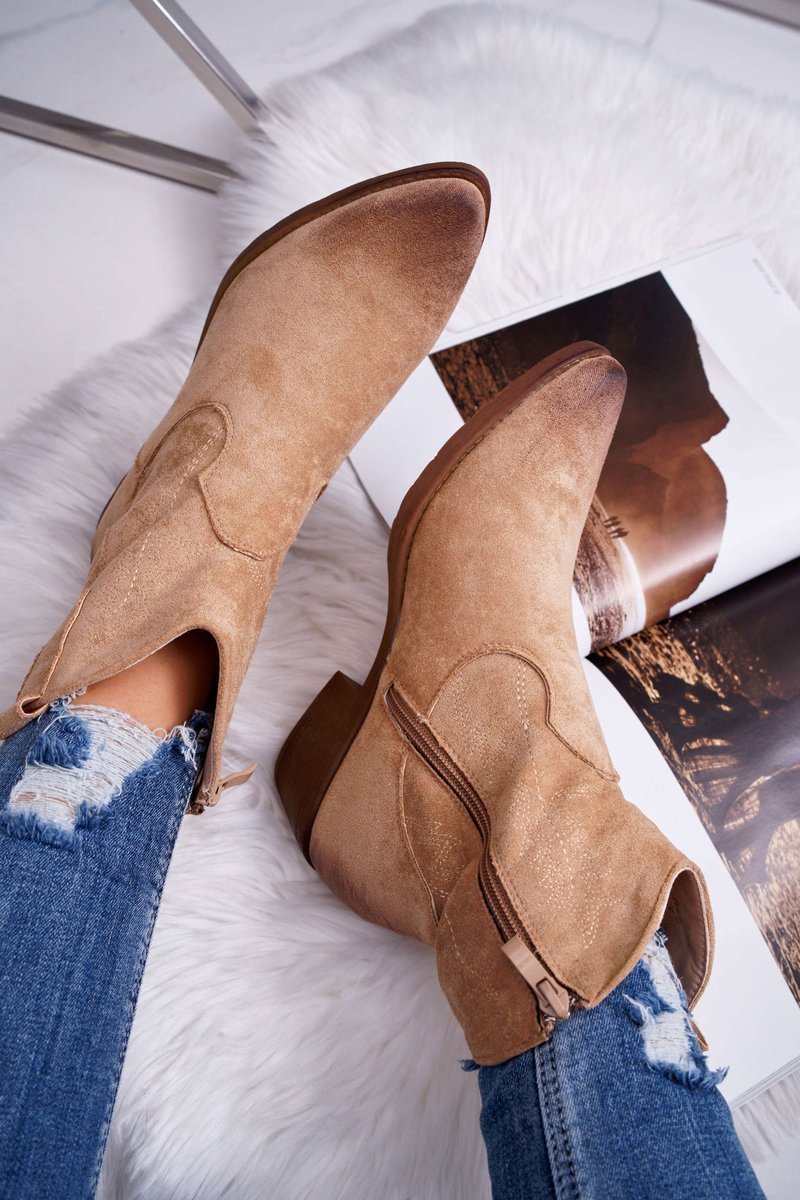 Damskie Botki Kowbojki Zamszowe Beżowe Ferders