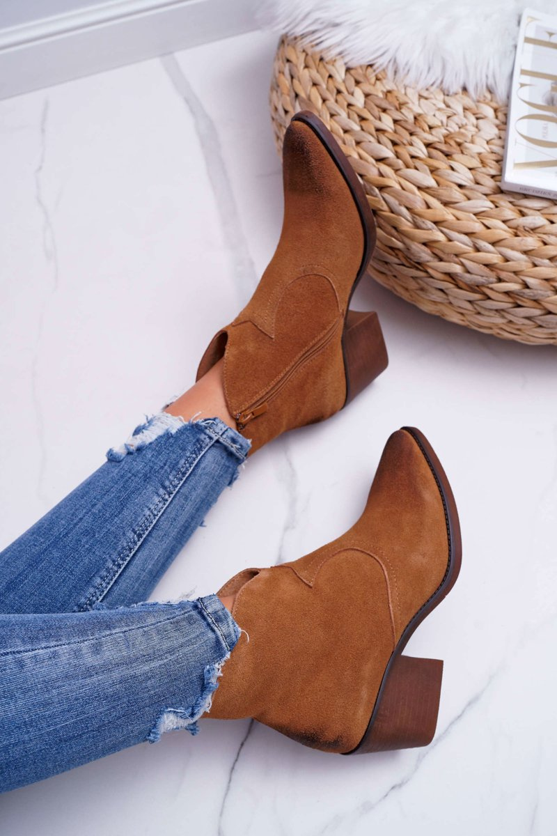 Damskie Botki Kowbojki Zamszowe Camel Barski 1638