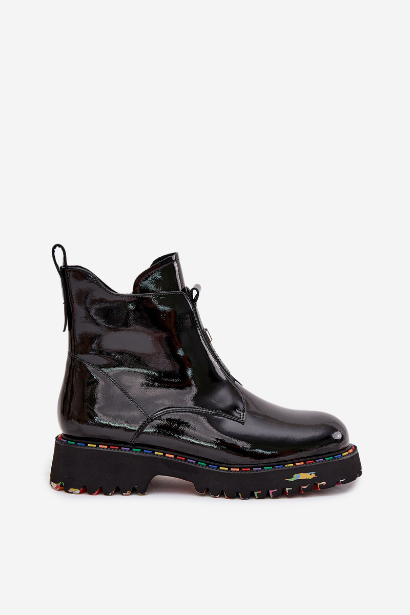 Damskie Botki Lakierowana Skóra Naturalna Ocieplane Czarne Artiker 57C0166