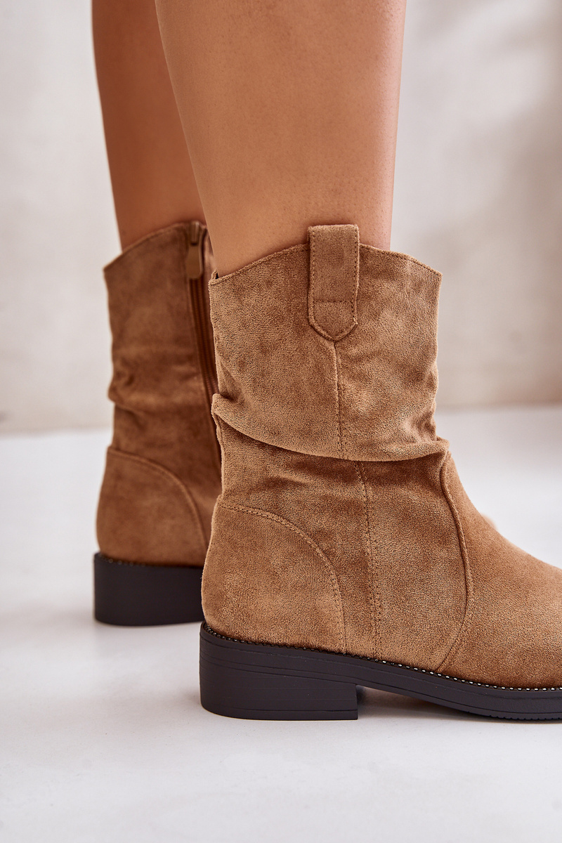 Damskie Botki Marszczona Cholewka Zdobieniem Ocieplane Camel Etteara