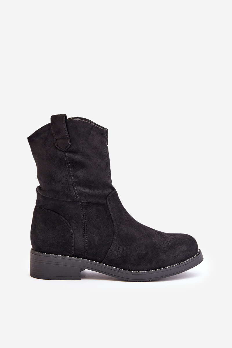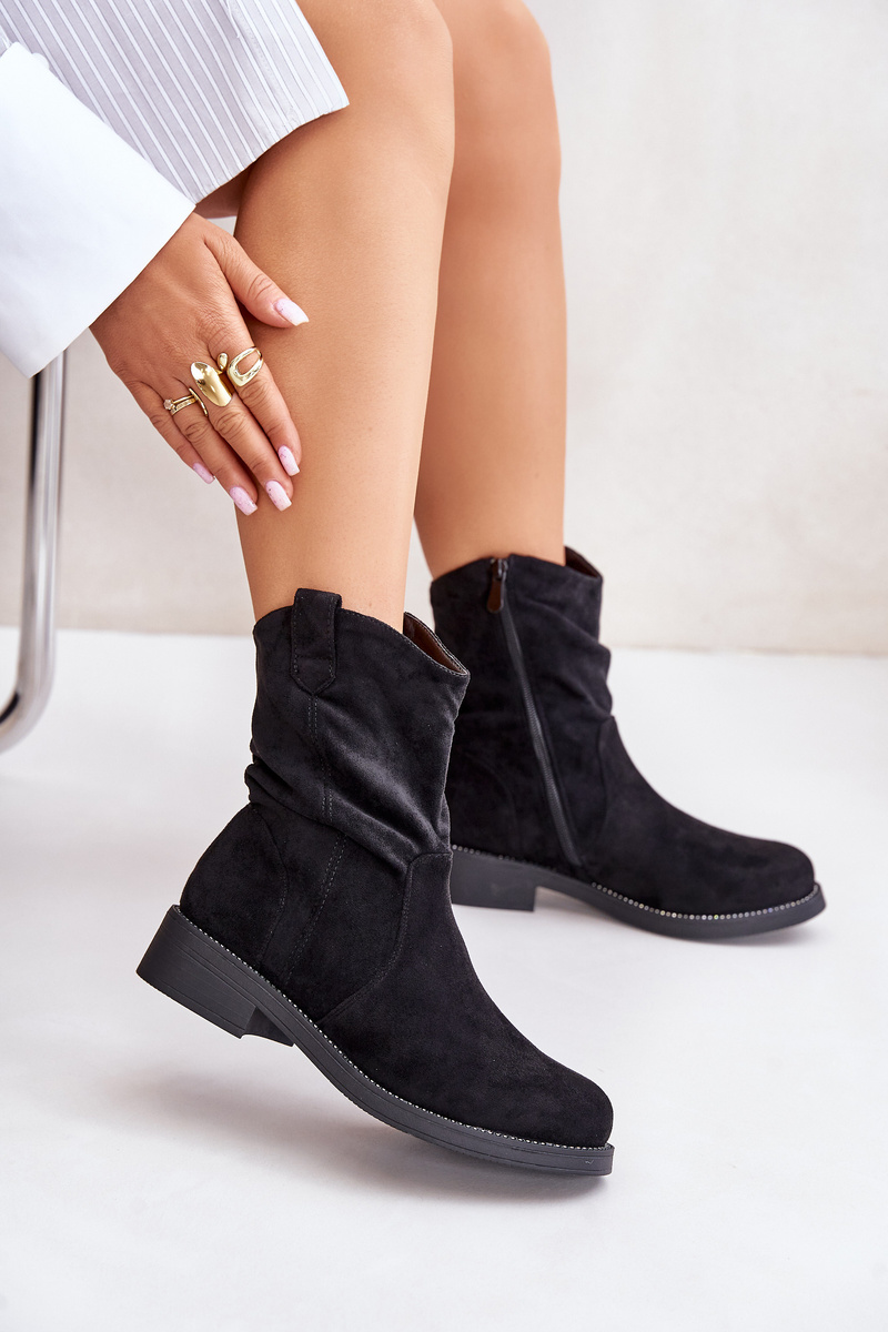 Damskie Botki Marszczona Cholewka Zdobieniem Ocieplane Czarne Etteara