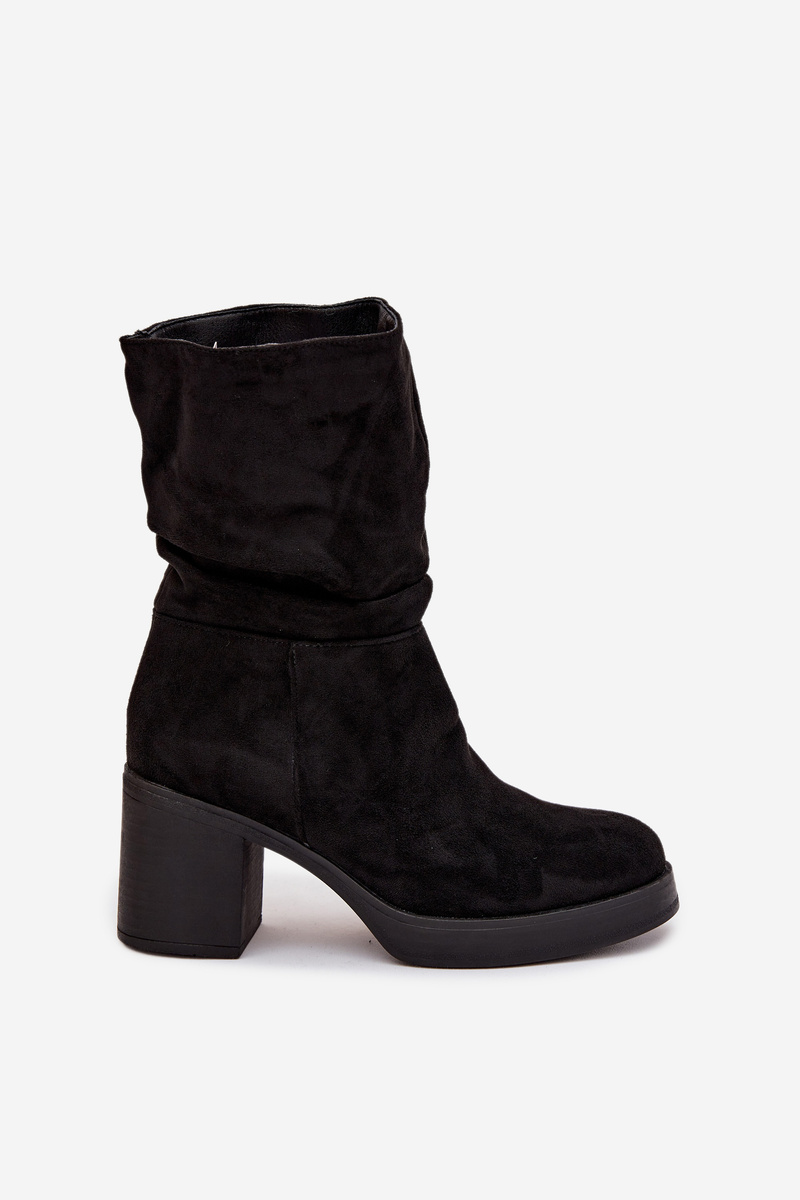 Damskie Botki Marszczone Na Słupku Ocieplane Czarne Amoria