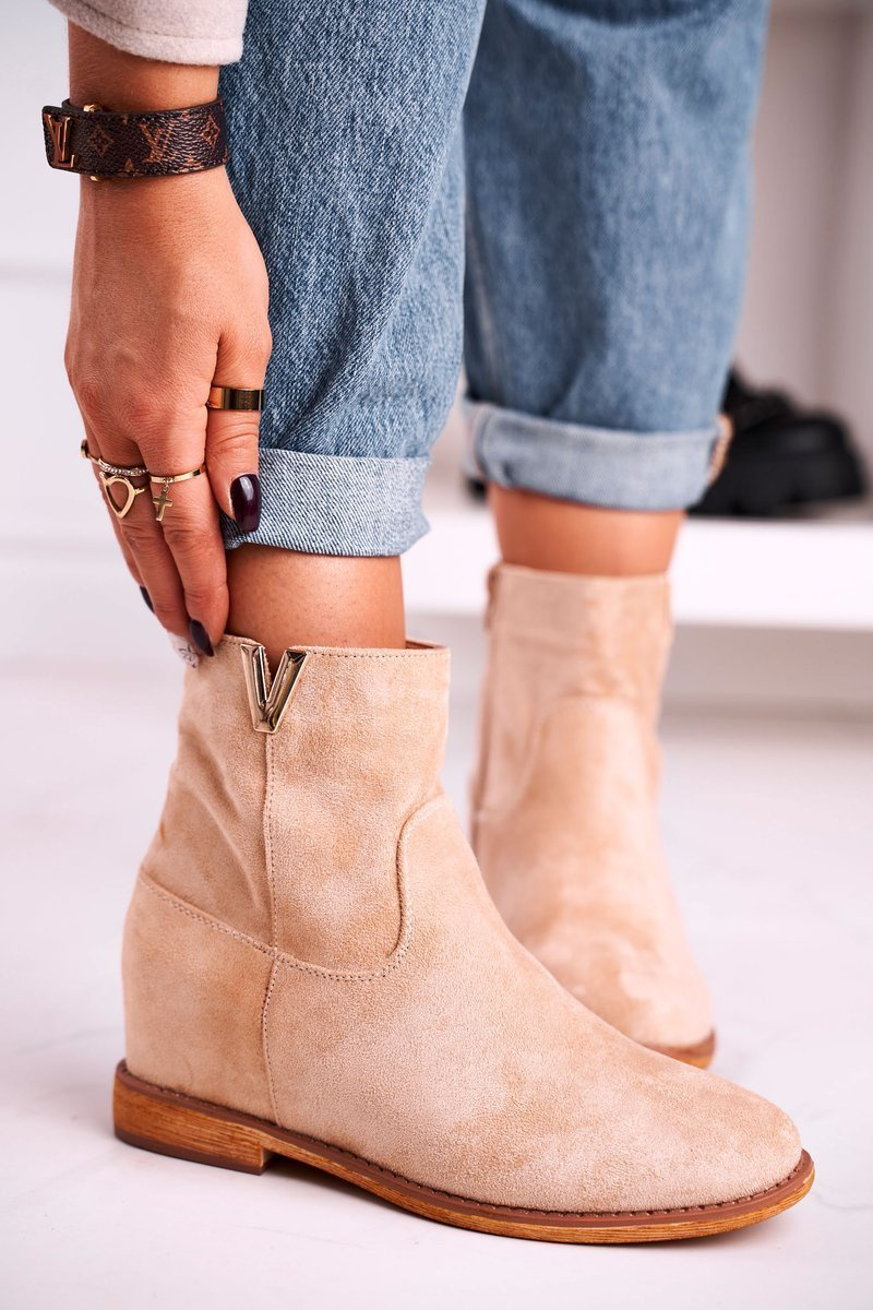 Damskie Botki Na Koturnie Zamszowe Beżowe Vanya
