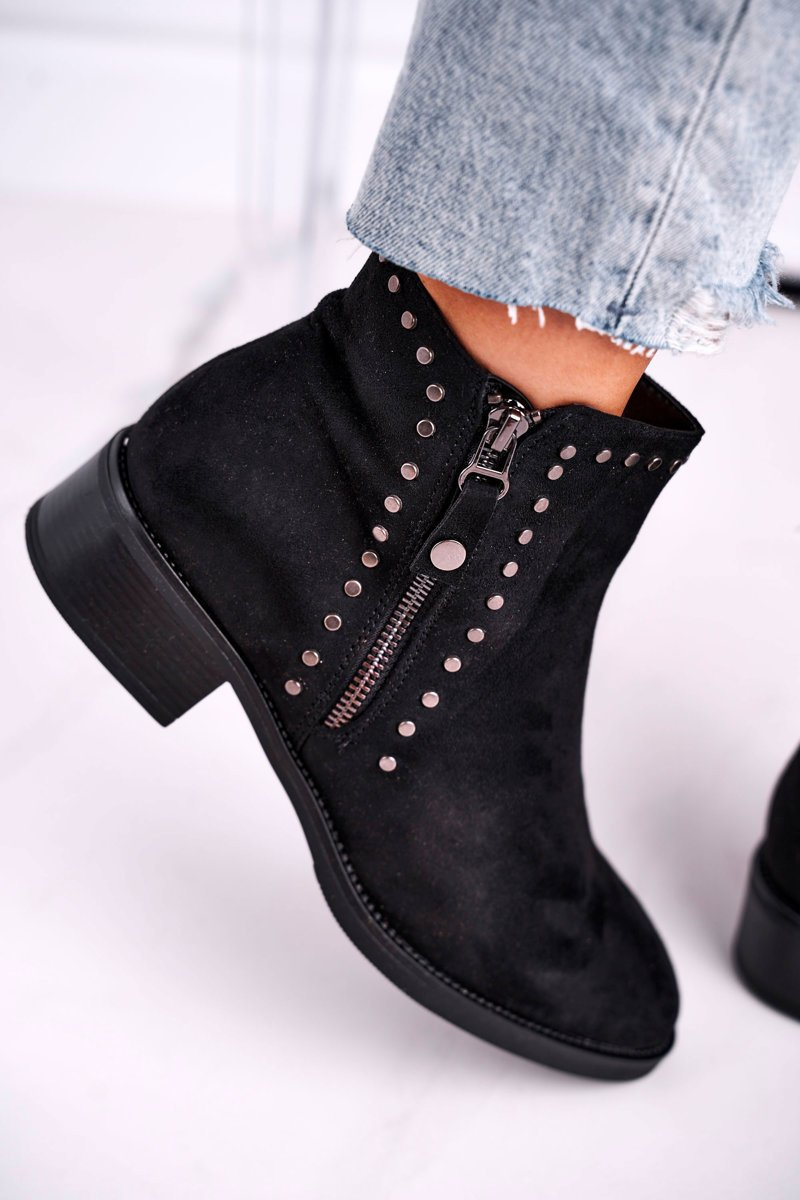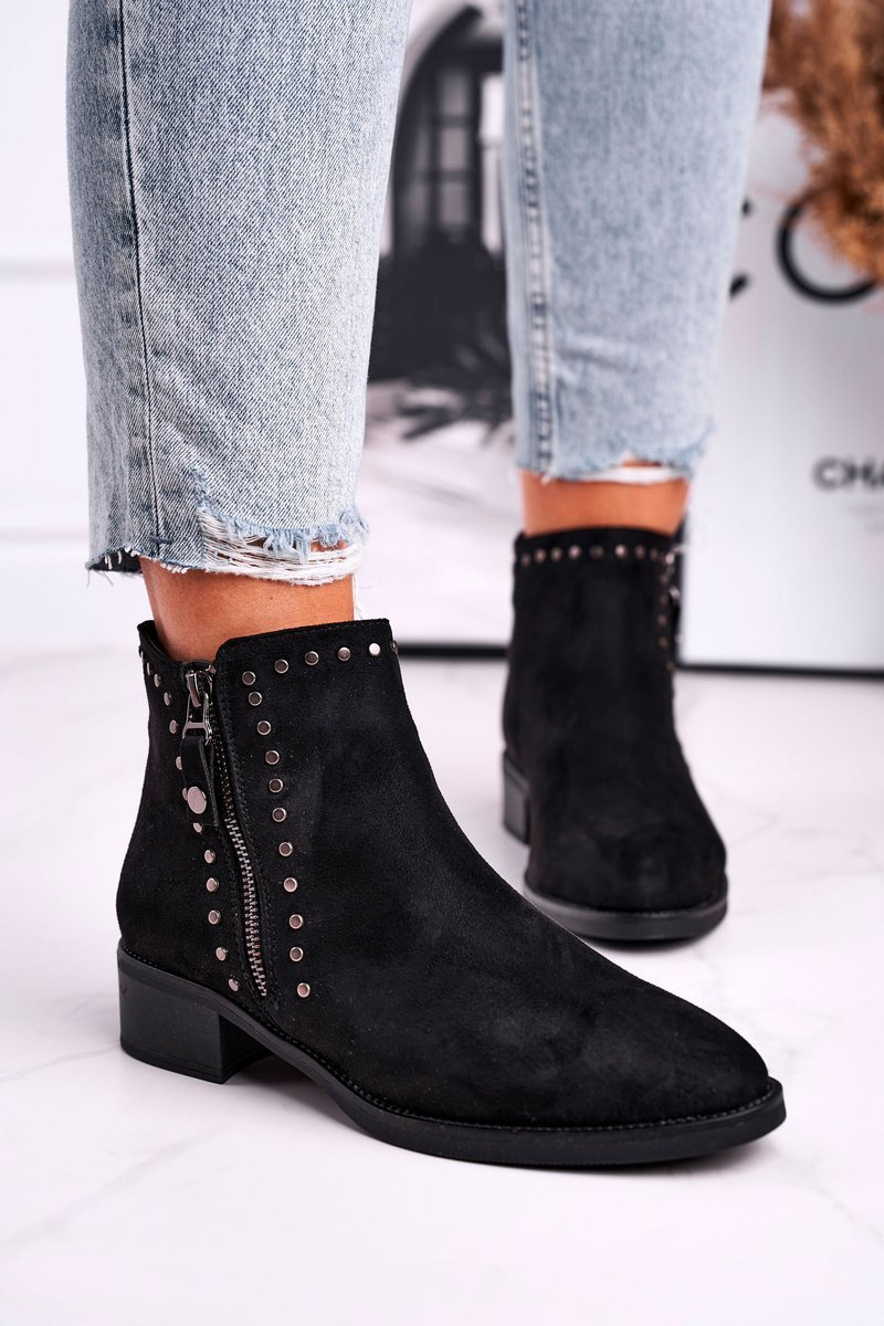 Damskie Botki Na Obcasie Nity Czarne Control