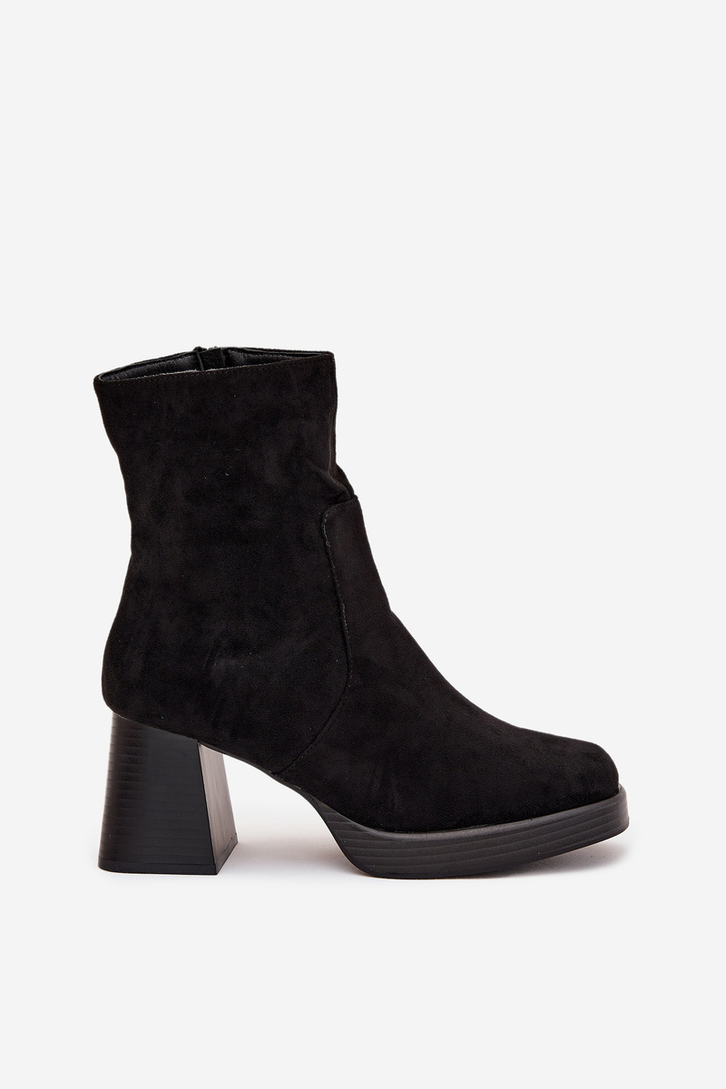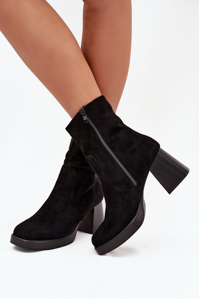 Damskie Botki Na Słupkowym Obcasie Eko Zamszowe Czarne Serinna