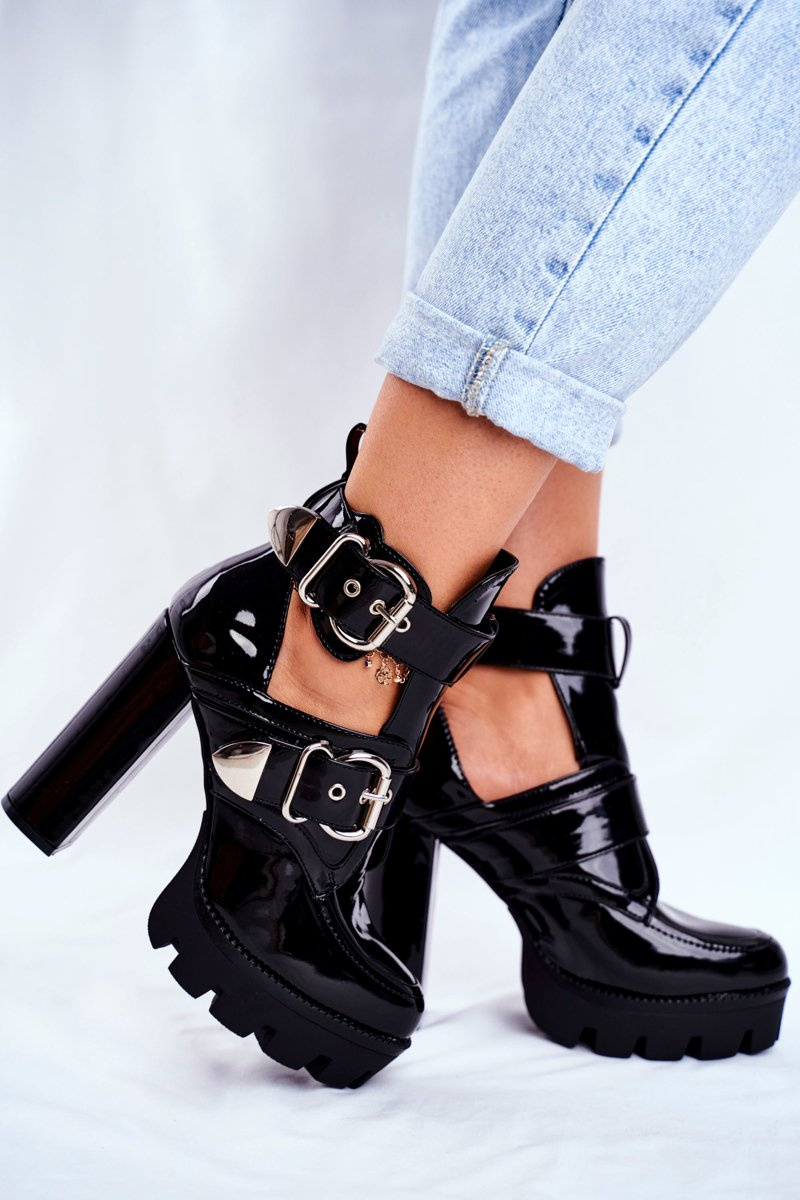 Damskie Botki Na Słupku Lakierowane Czarne Rock Time!