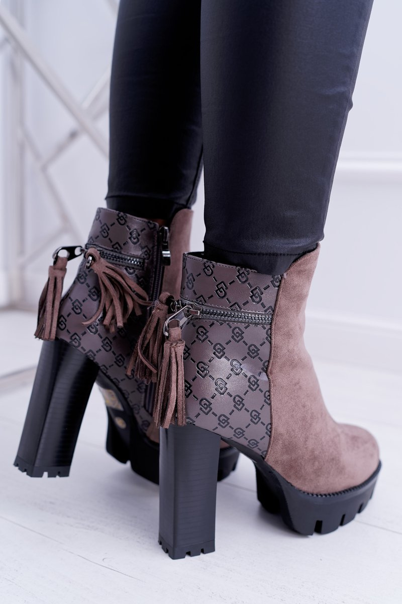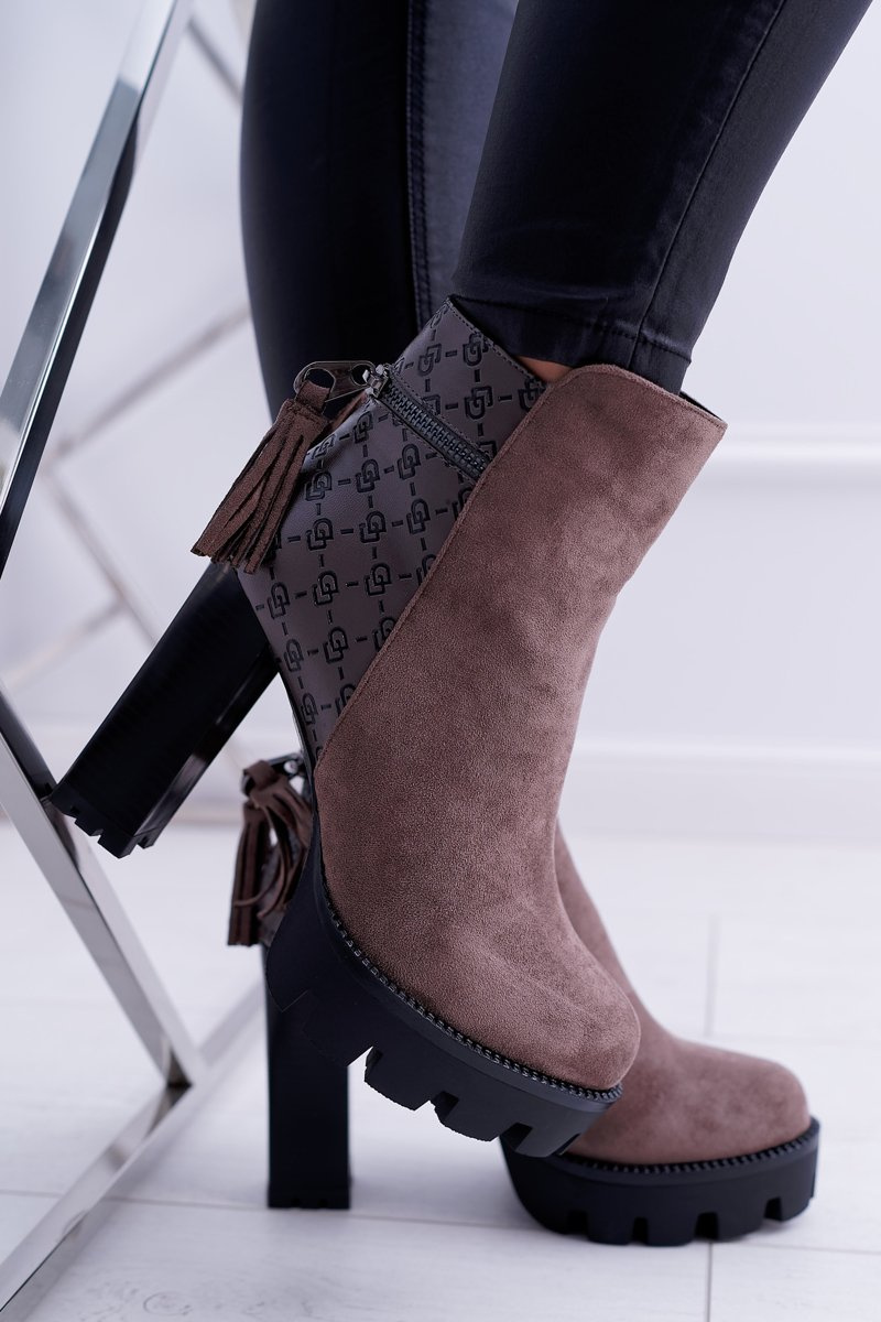 Damskie Botki Na Słupku Lu Boo Ciepłe Coffe Milky Way