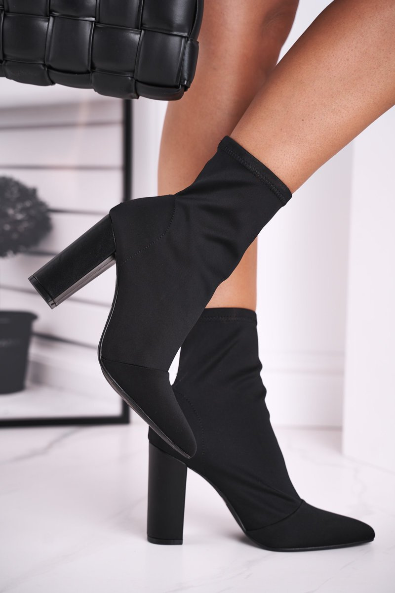 Damskie Botki Na Słupku Lycra Czarne Morie