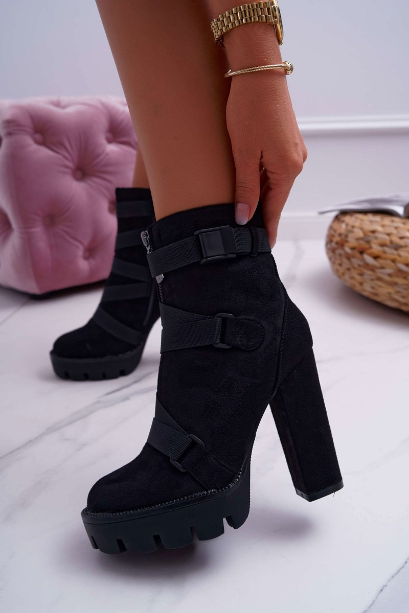 Damskie Botki Na Słupku Ocieplane Czarne Zamszowe Guiness