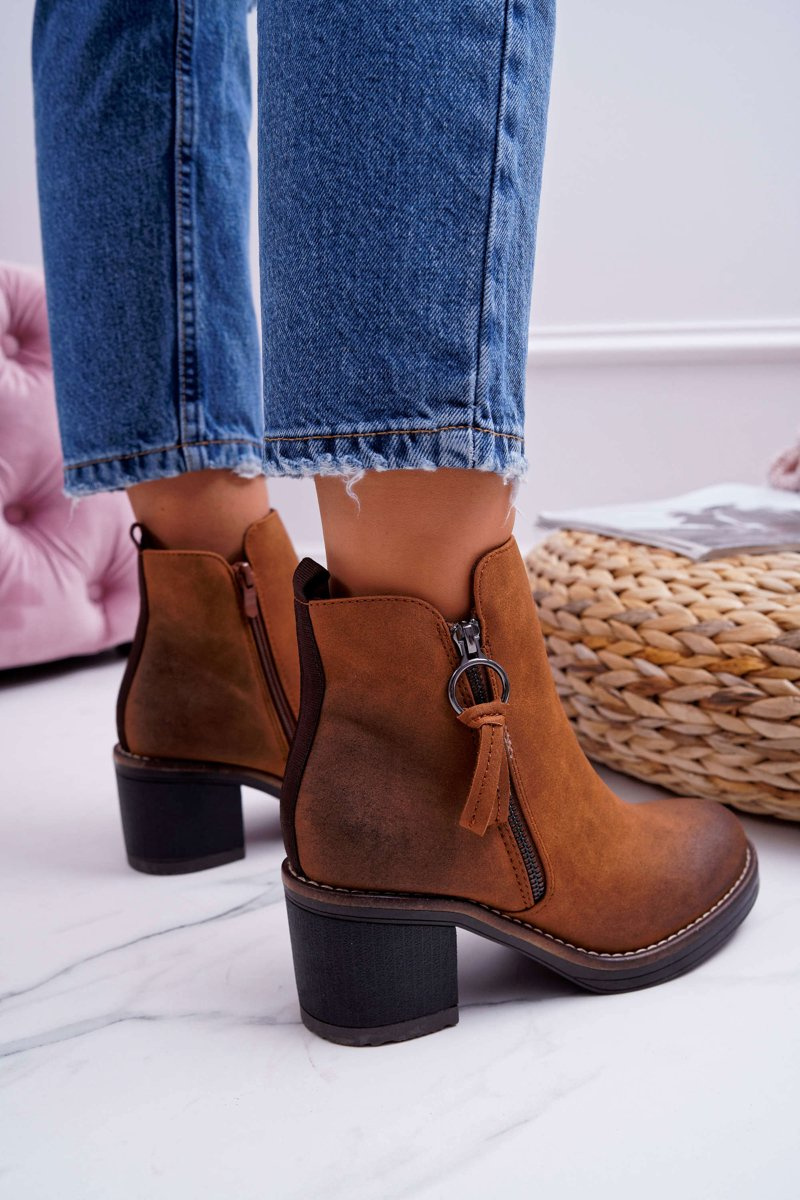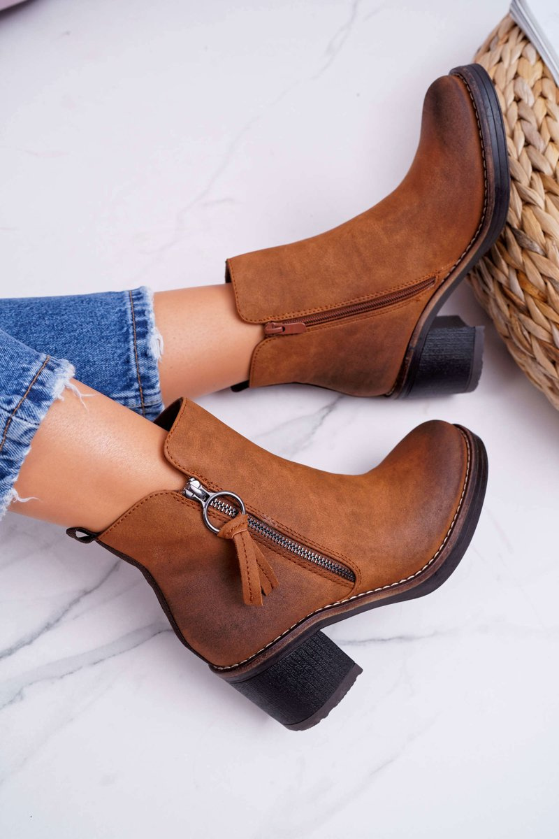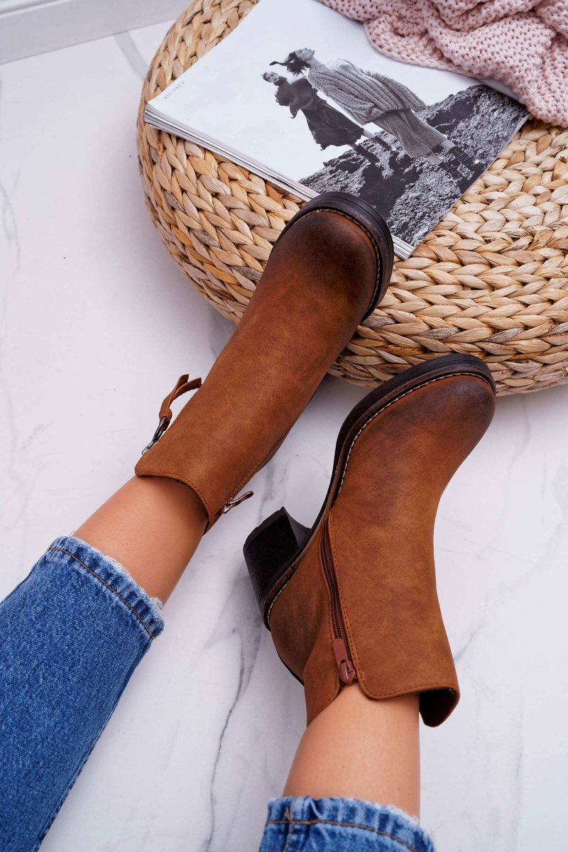 Damskie Botki Na Słupku Ocieplane Filcem Camel Delia