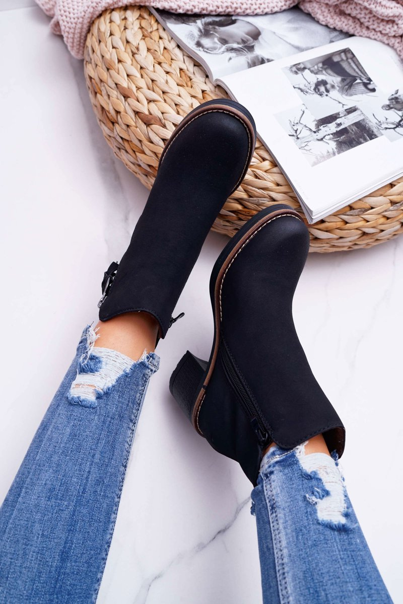 Opinie o Damskie Botki Na Słupku Ocieplane Filcem Czarne Delia