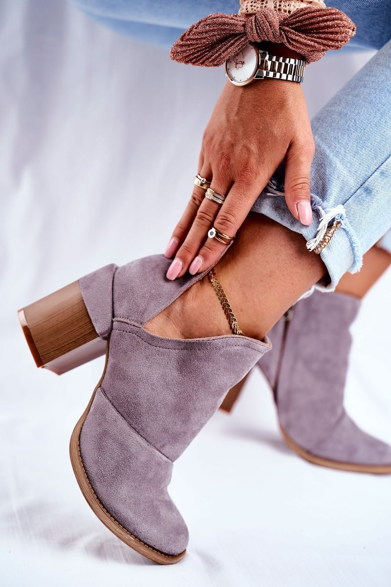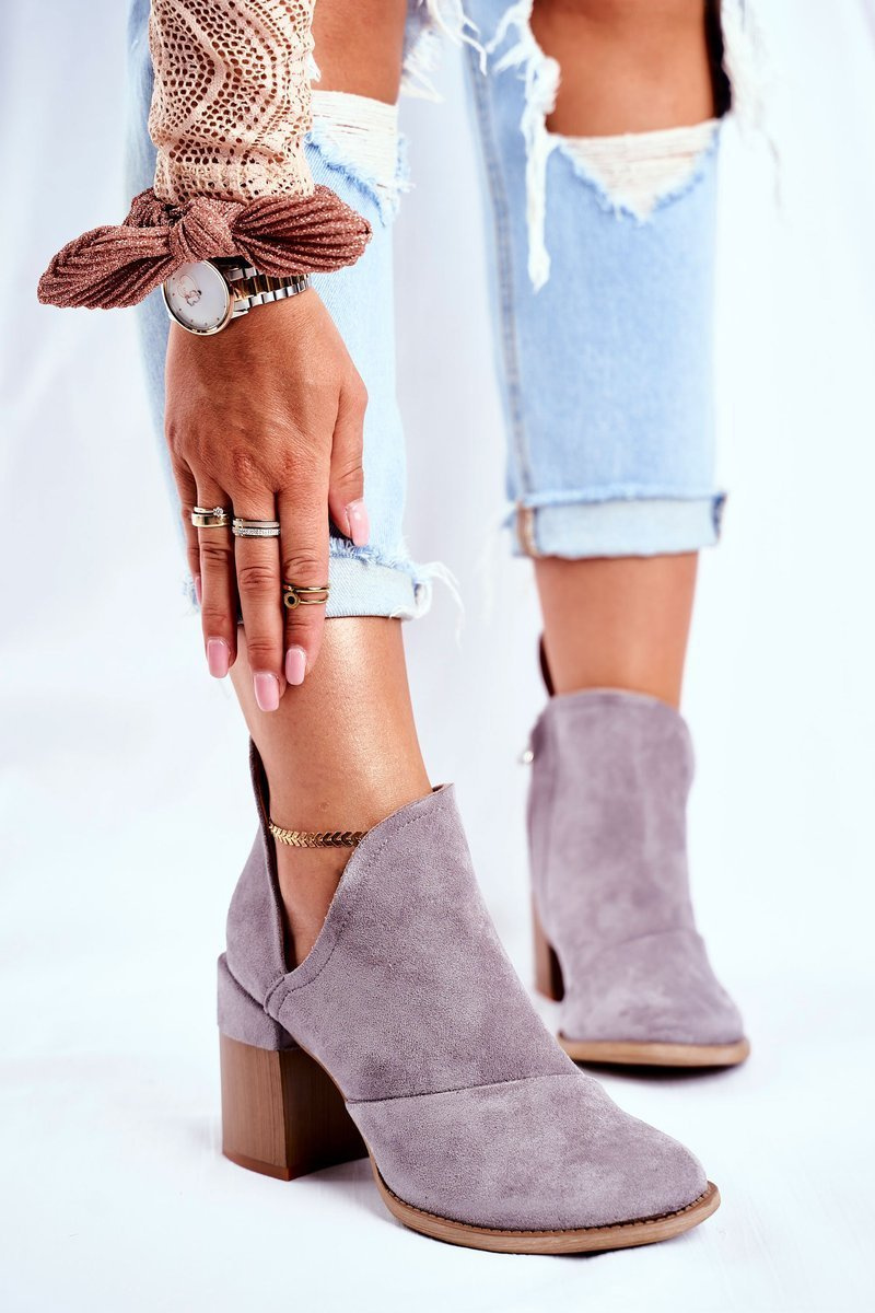 Opinie o Damskie Botki Na Słupku Szare Wycięte Meliori