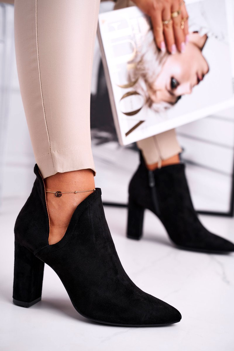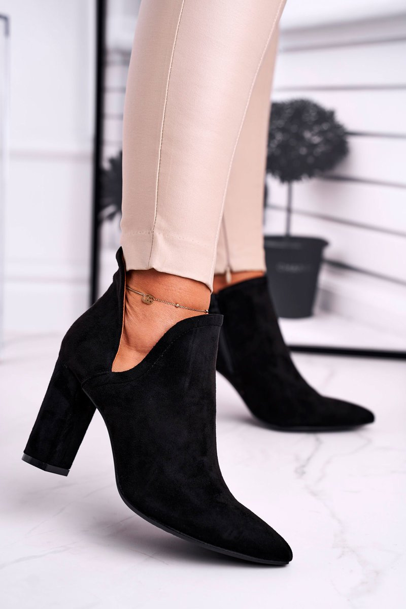 Damskie Botki Na Słupku Wycięte Czarne Voom