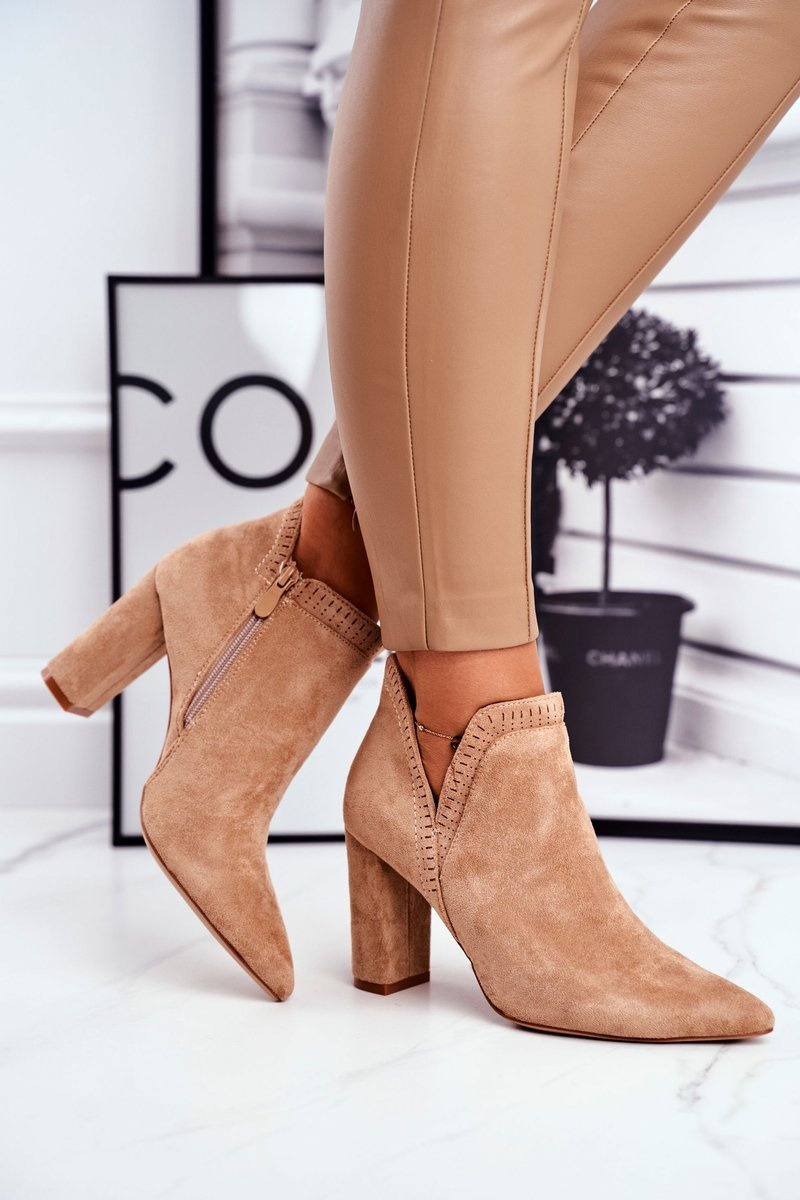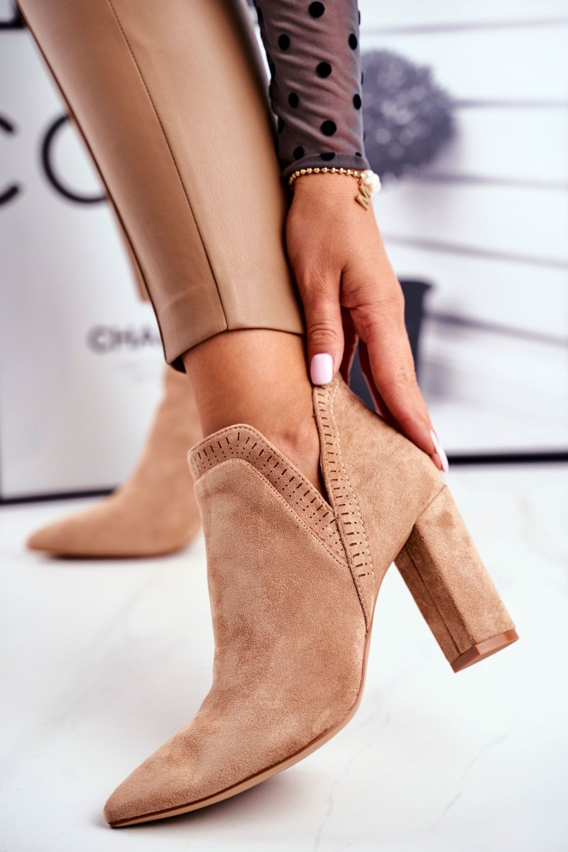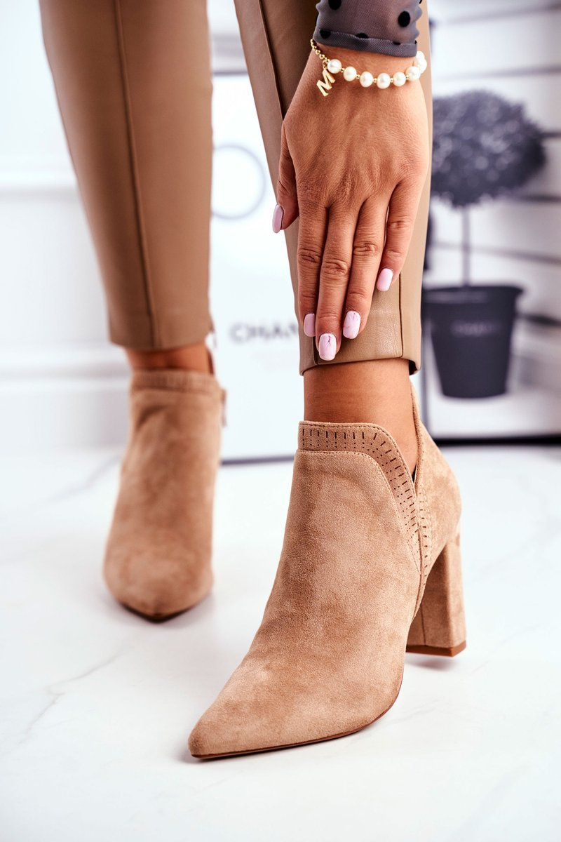 Damskie Botki Na Słupku Wycięte Khaki Bimmer