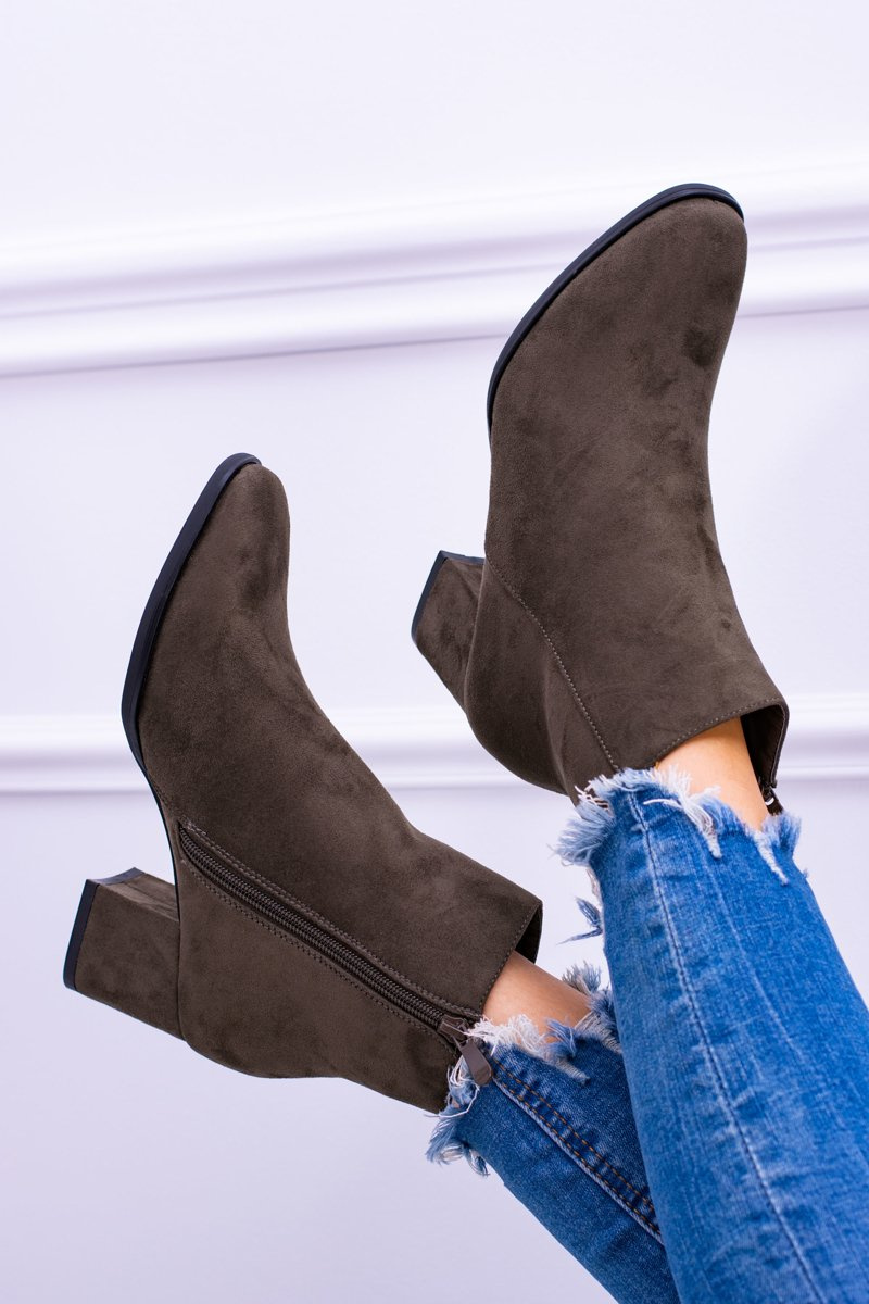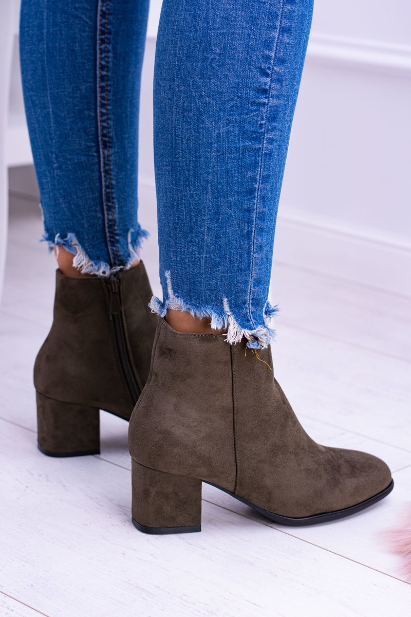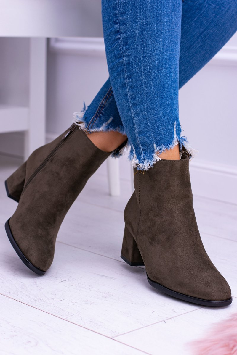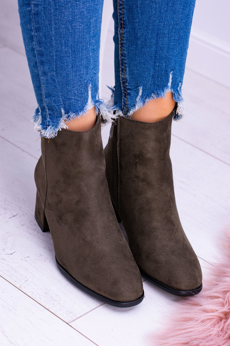 Damskie Botki Na Słupku Zamsz Khaki Ferimate