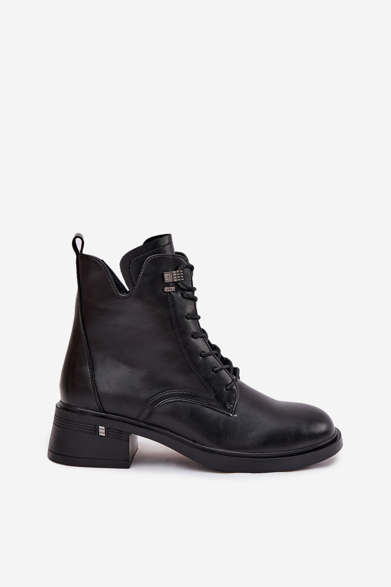 Damskie Botki Obcas Klocek Ocieplane Czarne Vinceza 58602