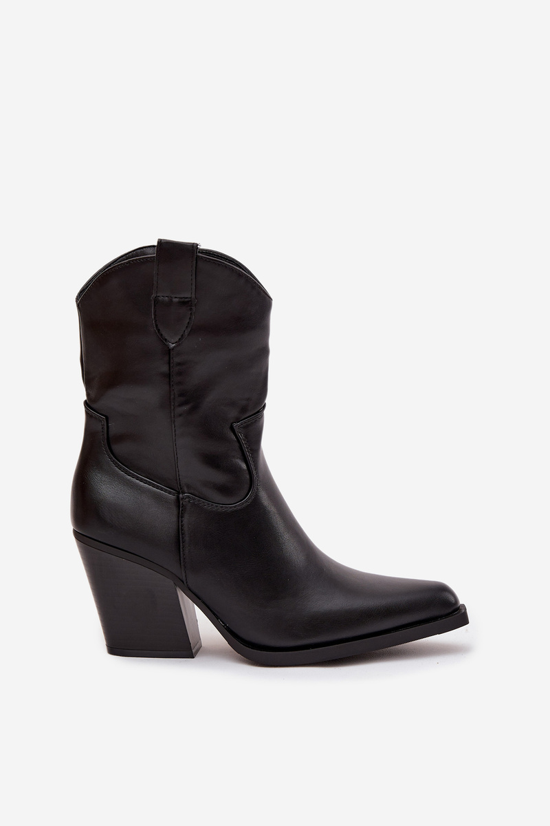 Damskie Botki Obcas Słupek Kowbojki Eko Skórzane Czarne Sorelia