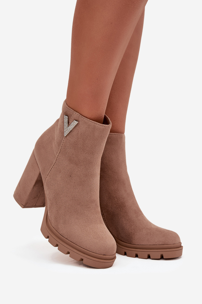 Damskie Botki Obcas Słupek Ozdobny Detal Beżowe Briella