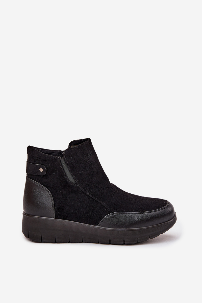 Damskie Botki Ocieplane Futerkiem Zamek Czarne Breena