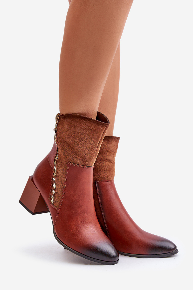 Damskie Botki Ocieplane Obcas Słupek Brązowe Relabina