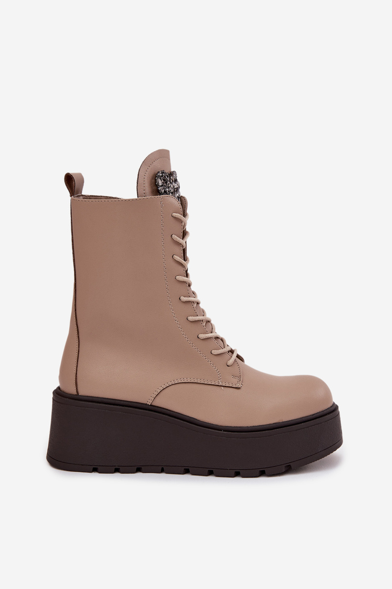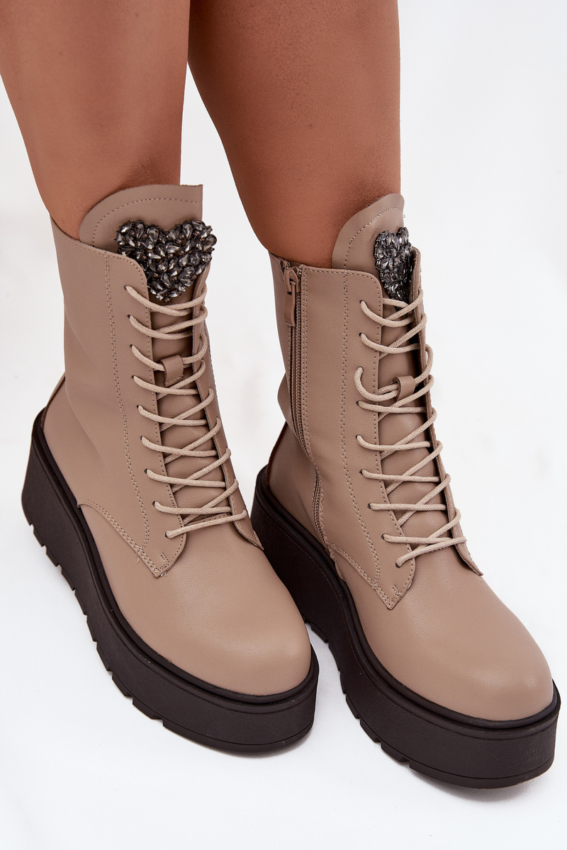 Damskie Botki Ocieplane Skóra Naturalna Ozdoba Beżowe Ulrika