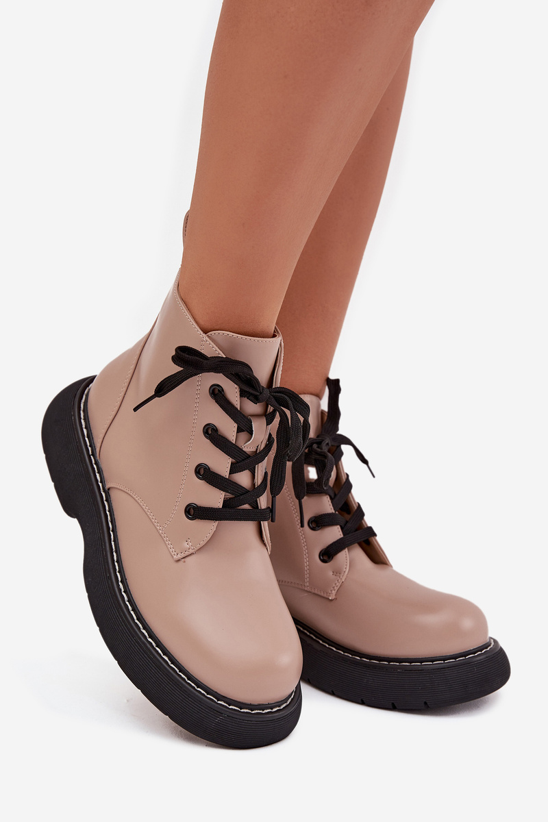 Damskie Botki Ocieplane Sznurowane Na Platformie Ciemnobeżowe Harmine
