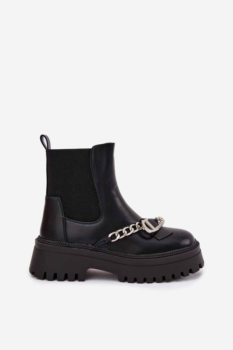 Damskie Botki Platforma Ozdobny Łańcuch Czarne Marvella