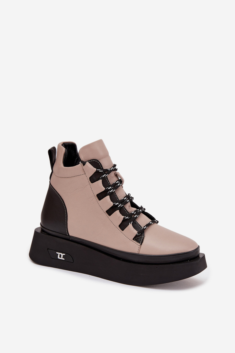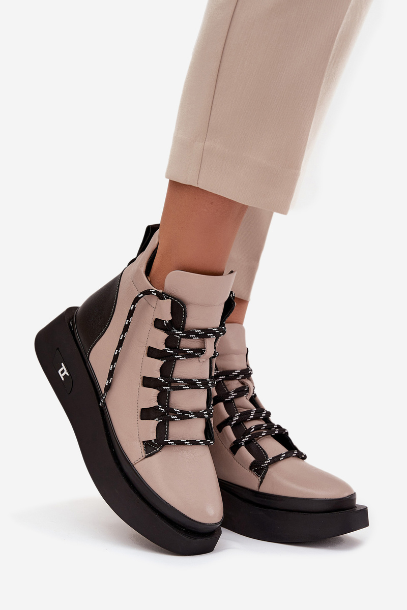 Damskie Botki Platforma Skóra Naturalna Beżowe Artiker 55C0884